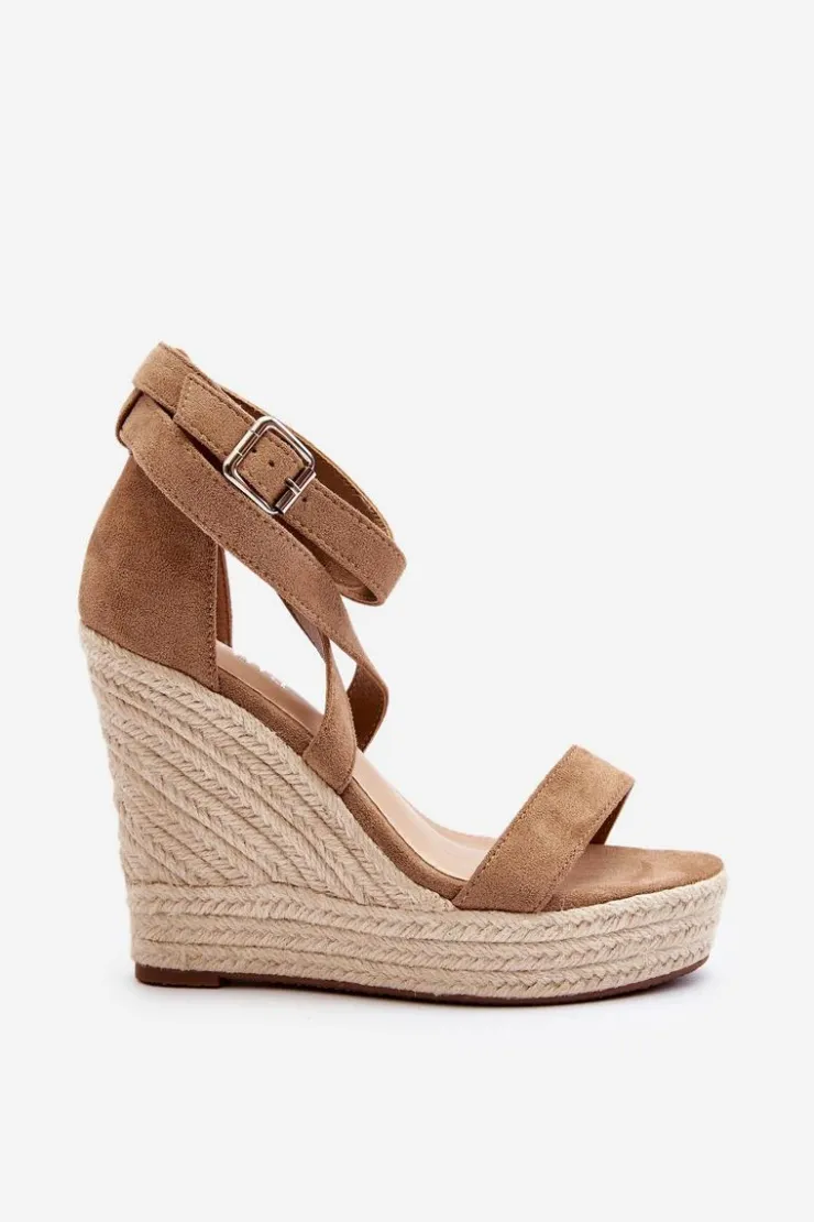 Sandały damskie wykonane z eko zamszu. Osadzone na koturnie i platforma z jutową plecionką. Zapinane na regulowany pasek ze sprzączką. Model ten to doskonałe rozwiązanie dla osób poszukujących obuwia, które łączy wygodę i elegancję, szczególnie podczas długich letnich spacerów! Przy wyborze rozmiaru prosimy sugerować się tabelą rozmiarów.
