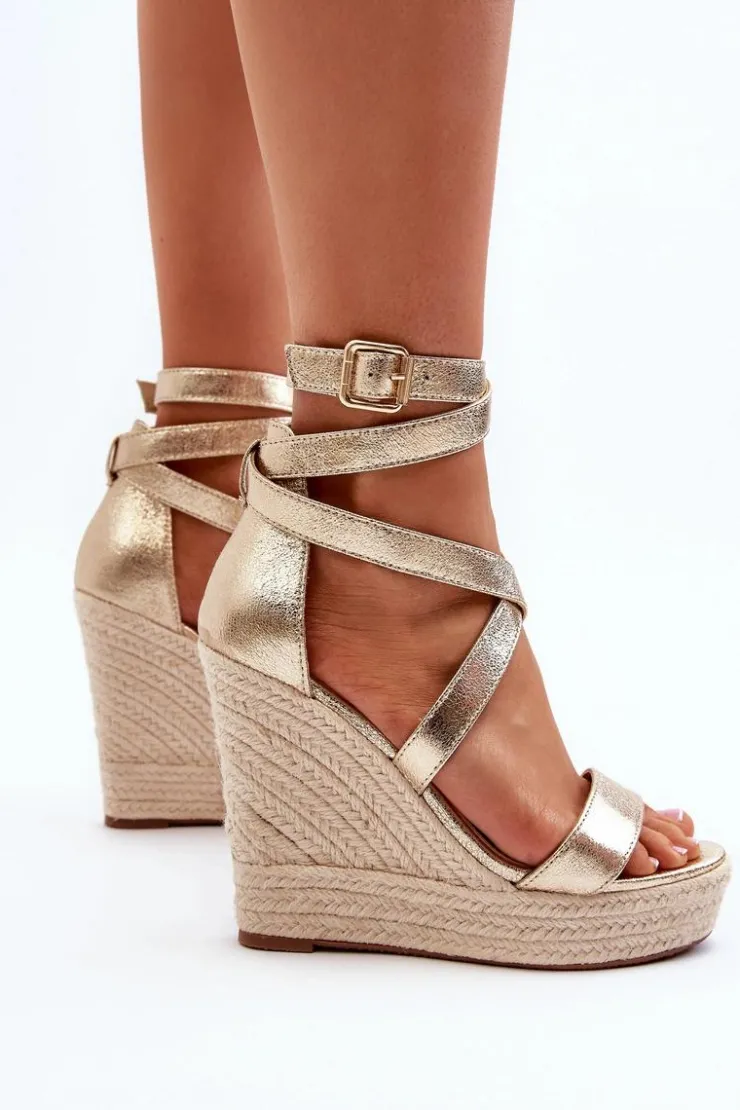 Sandały damskie wykonane z eko skóry. Osadzone na koturnie i platforma z jutową plecionką. Zapinane na regulowany pasek ze sprzączką. Model ten to doskonałe rozwiązanie dla osób poszukujących obuwia, które łączy wygodę i elegancję, szczególnie podczas długich letnich spacerów! Przy wyborze rozmiaru prosimy sugerować się tabelą rozmiarów.