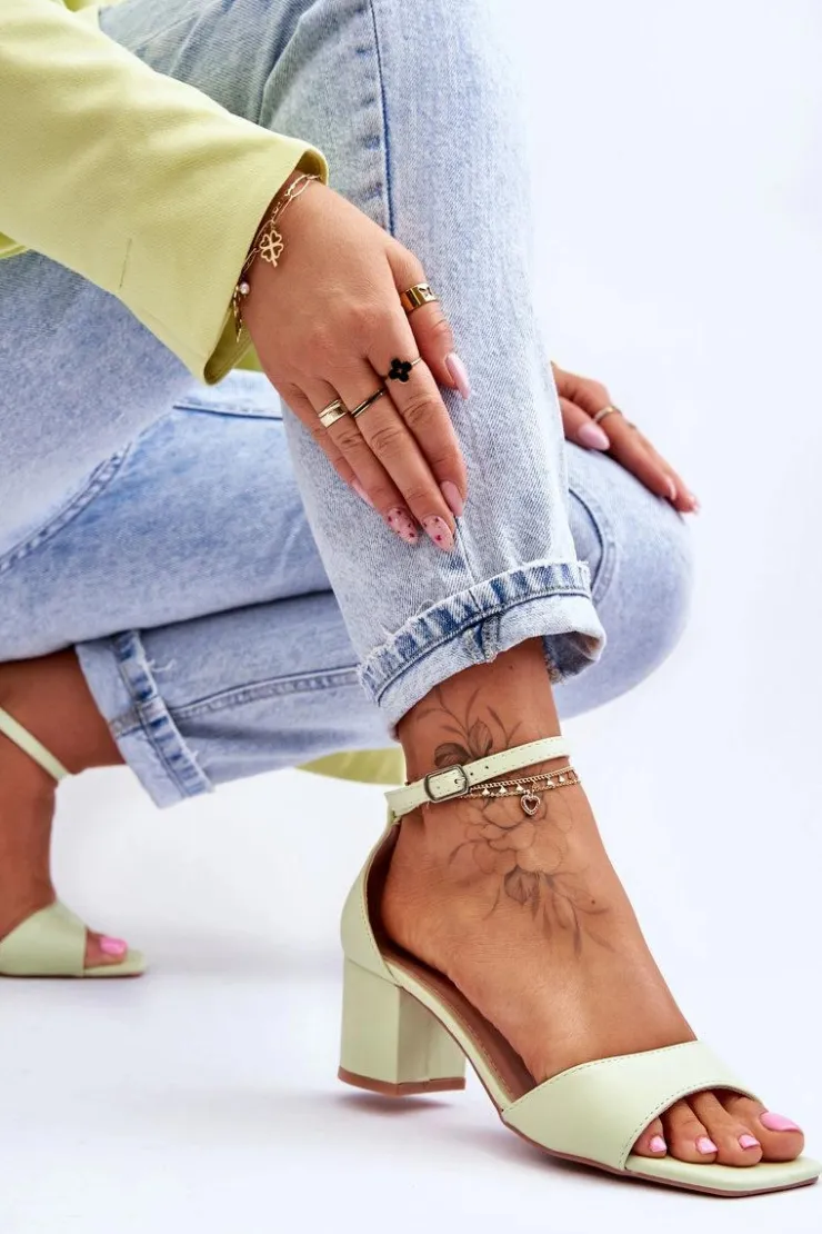 Sandały damskie zostały wykonane z eko skóry. Zostały osadzone na obcasie w postaci niskiego słupka. Posiadają odkryty, kwadratowy nosek oraz zakrytą piętą z usztywnianym zapiętkiem. Model ten jest zapinany na regulowany pasek ze sprzączką. Wkładka z eko skóry zapewni komfortowe użytkowanie. Przy wyborze rozmiaru prosimy sugerować się tabelą rozmiarów.
