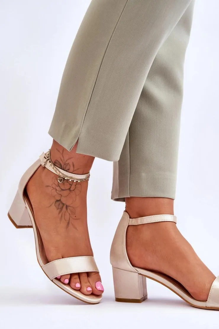 Damskie Boto Satynowe Sandały Na Niskim Obcasie Beżowe Juliet