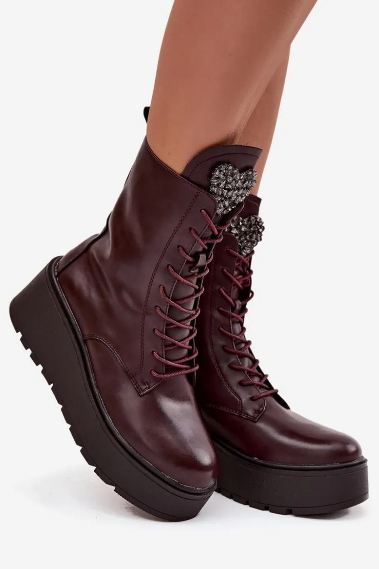 Botki damskie marki Jezzi to propozycja dla kobiet, które cenią wygodę połączoną z modnym wyglądem. Wykonane z naturalnej skóry, wyróżniają się trwałością oraz eleganckim wyglądem. Osadzone na stabilnym koturnie z platformą, optycznie wydłużają sylwetkę, jednocześnie zapewniając komfort podczas noszenia. Wnętrze butów zostało ocieplone, dzięki czemu sprawdzą się one idealnie w chłodniejsze dni sezonu jesienno-zimowego. Model posiada sznurowanie i boczny zamek, co ułatwia dopasowanie oraz szybkie zakładanie. Szczególną uwagę zwracają błyszczące kryształki umieszczone na języku, układające się w kształt serca – ten ozdobny detal dodaje wyjątkowego uroku i podkreśla ich kobiecy charakter. To obuwie, które doskonale pasuje zarówno do codziennych, jak i bardziej eleganckich stylizacji, stając się oryginalnym akcentem w garderobie. Przy wyborze rozmiaru prosimy sugerować się tabelą rozmiarów.