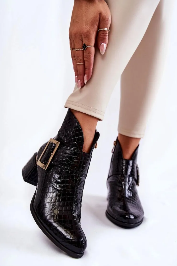 Botki damskie zostały wykonane z wysokiej jakości naturalnej skóry. Model został osadzony na niskim obcasie w postaci klocka. Botki są zapinane na zamek błyskawiczny. Posiadają ozdobną klamrę. Wewnątrz zostały ocieplone kocem obuwniczym. Ten model to idealny wybór na jesienne, chłodne dni. Powinnaś go mieć! Przy wyborze rozmiaru prosimy sugerować się tabelą rozmiarów.