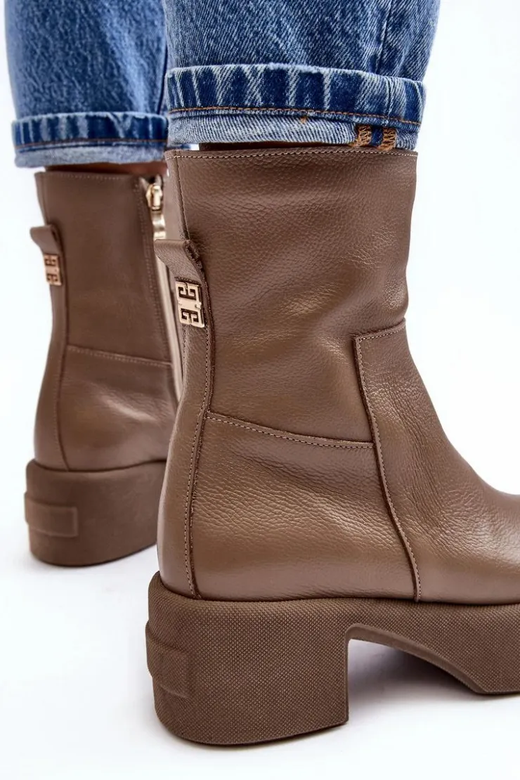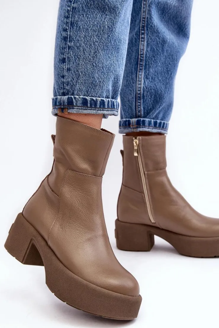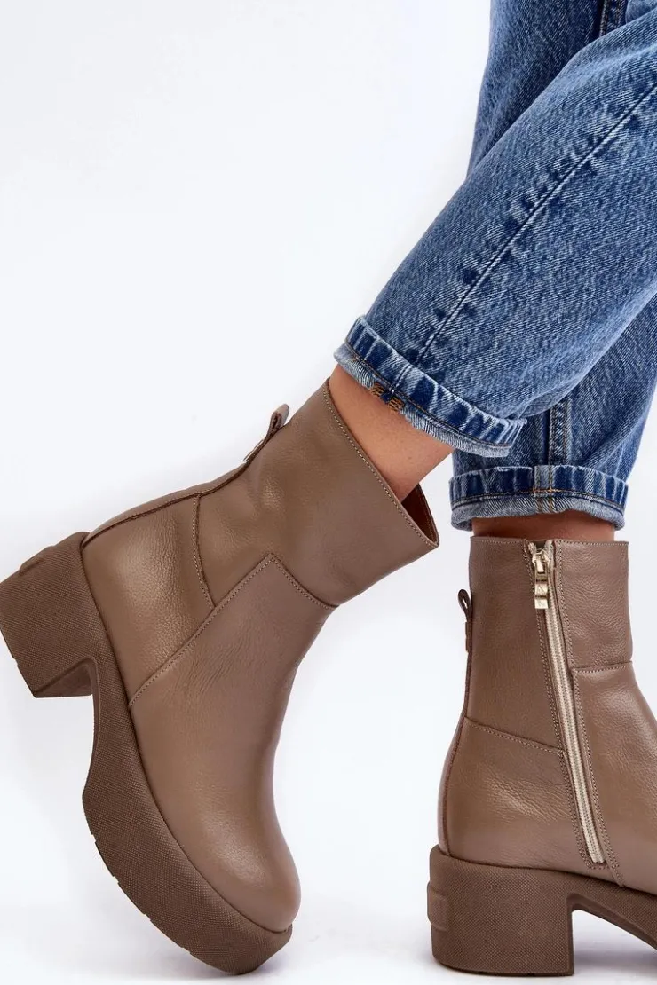Damskie Boto Skórzane Botki Na Niskim Obcasie Ciemnobeżowe Lemar Volavola