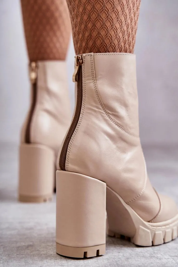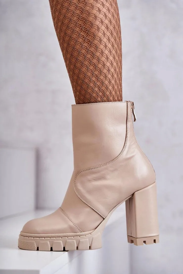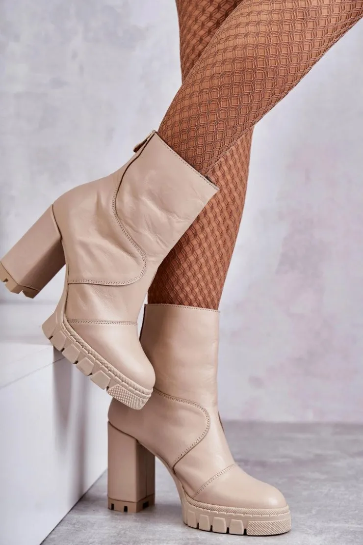 Klasyczny model o fasonie traperów na obcasie. Modne żłobienia po bokach podeszwy. Botki osadzone na delikatnej platformie oraz obcasie w formie słupka. Botki zostały wykonane z naturalnej skóry. Miękka wkładka zapewni komfort podczas użytkowania. Zapinane z tyłu cholewki na suwak. Dodatkowo zapiętek jest usztywniany. Przy wyborze rozmiaru prosimy sugerować się tabelą rozmiarów.