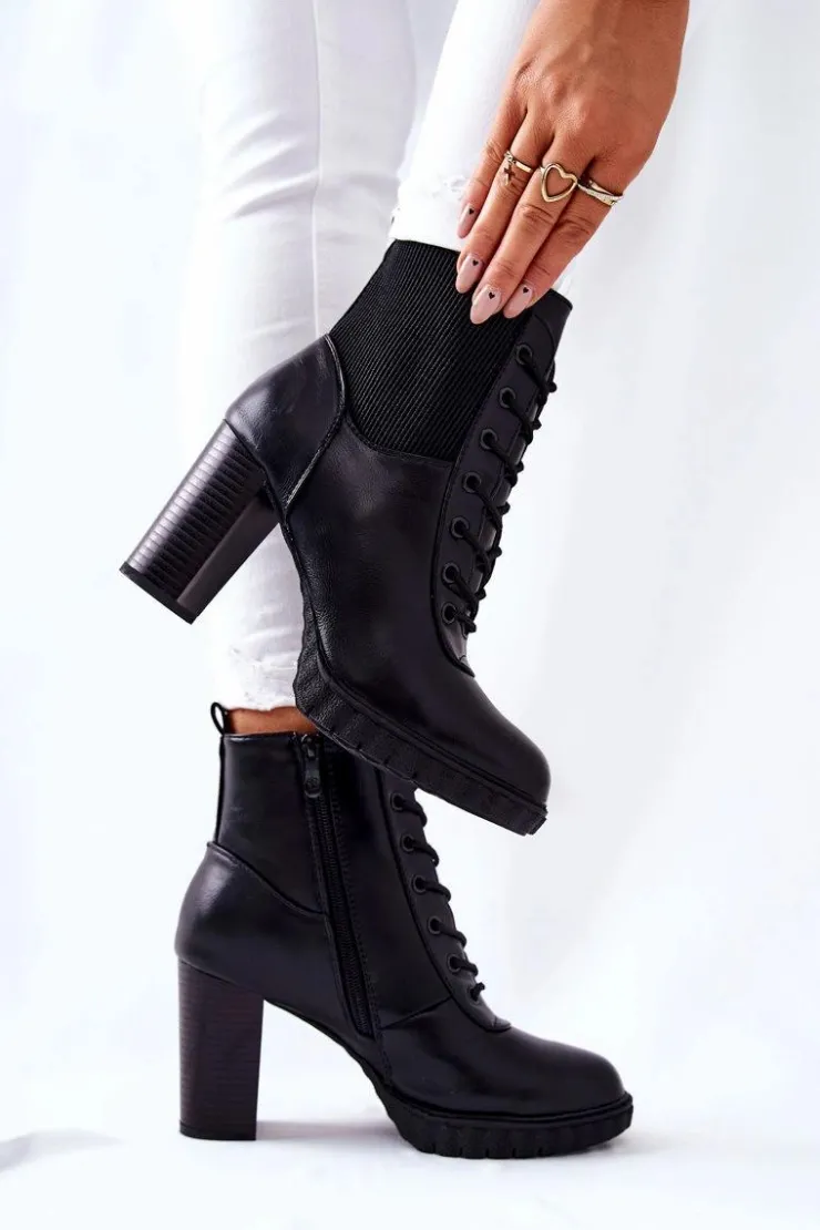 Botki posiadają ściągacz, który pozwoli na dopasowanie do nogi. Klasyczny fason idealnie będzie pasować do wielu stylizacji. Obcas w postaci słupka. Buty posiadają wiązanie oraz suwak. W środku posiadają ocieplenie w postaci koca obuwniczego. Sprawdź także pozostałą ofertę botków !