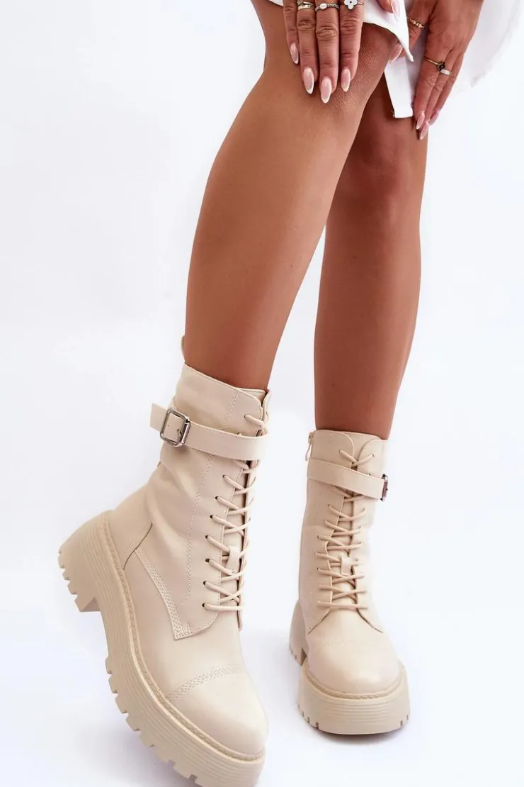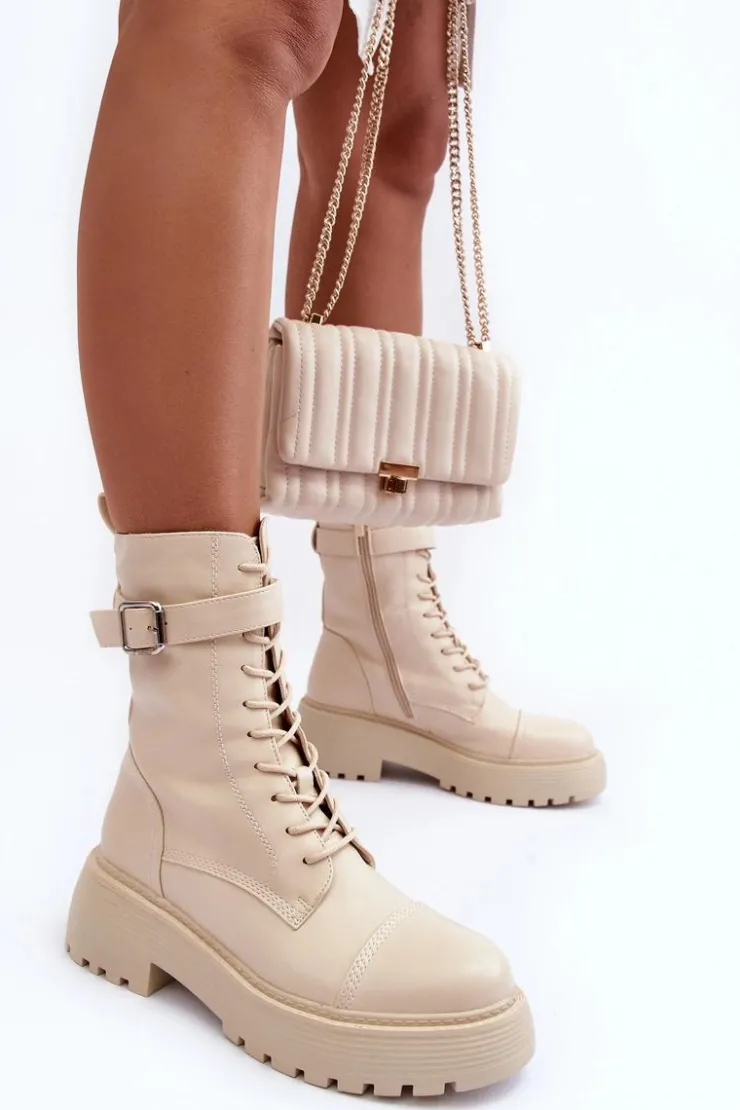 Workery damskie z wyższą cholewką. Osadzone na masywnym, płaskim obcasie oraz platformie. Zapinanie na suwak. Środek ocieplony kocem obuwniczym. Noski zaokrąglone. Świetny model do jesiennych i zimowych stylizacji! Przy wyborze rozmiaru prosimy sugerować się tabelą rozmiarów.