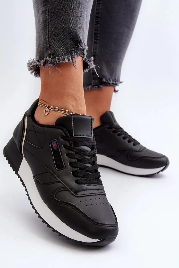 Damskie buty sportowe zostały wykonane z eko skóry. Osadzone na platformie z tworzywa sztucznego. Buty te posiadają z boku cholewki ozdobną wszywkę. Model klasycznie sznurowany pozwoli na odpowiednie dopasowanie obuwia do tęgości nogi. Ten model idealnie sprawdzi się podczas codziennych aktywności. Przy wyborze rozmiaru prosimy kierować się tabelą rozmiarów.