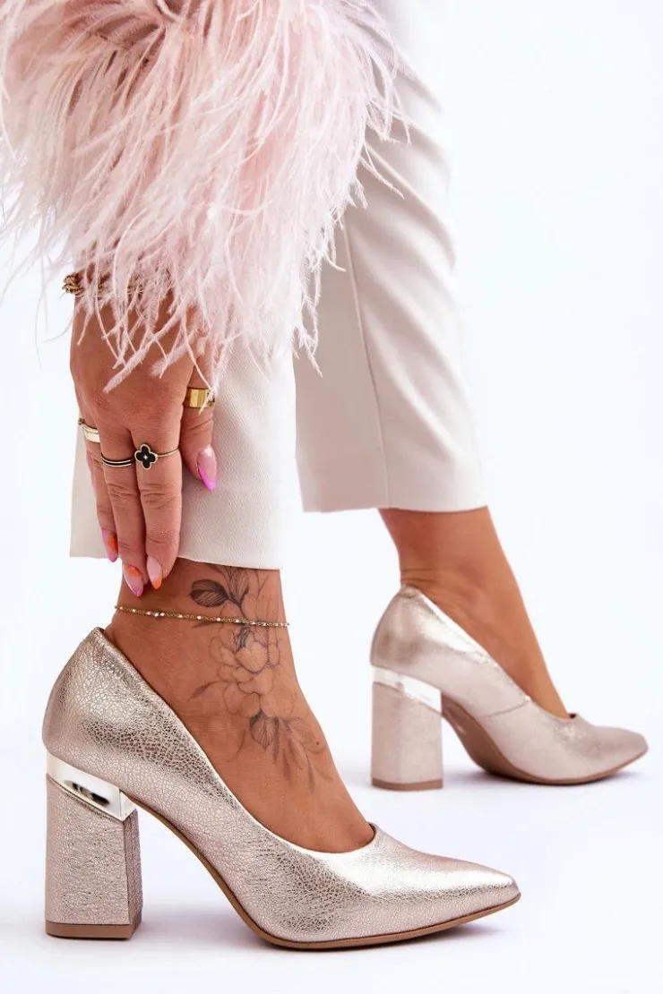 Damskie Boto Skórzane Czółenka Lewski 3117 Złote
