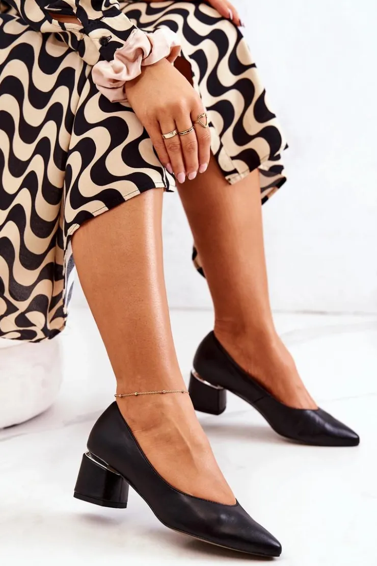 Piękne czółenka są wykonane z naturalnej skóry. Klasyczny model będzie prezentować się wspaniale w połączeniu z wieloma stylizacjami. Miękka, profilowana wkładka z naturalnej skóry daje poczucie komfortu na każdym kroku. Buty wykonane z dbałością o detale. Przy obcasie znajduje się ozdobny element. Nie zwlekaj i kup już dziś! Przy wyborze rozmiaru prosimy sugerować się tabelą rozmiarów, która dostępna jest po najechaniu bądź kliknięciu w dany rozmiar.
