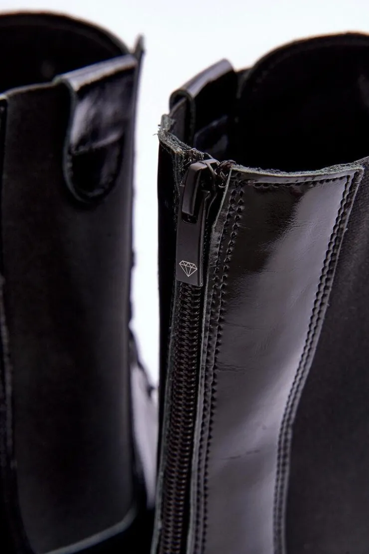 Workery damskie wykonane ze skóry naturalnej. Osadzone na płaskim obcasie i platformie. Na cholewce elastyczne wstawki oraz suwak z tyłu. Noski zaokrąglone. Skórzana wkładka zapewni komfortowe użytkowanie obuwia. Przy wyborze rozmiaru prosimy sugerować się tabelą rozmiarów.