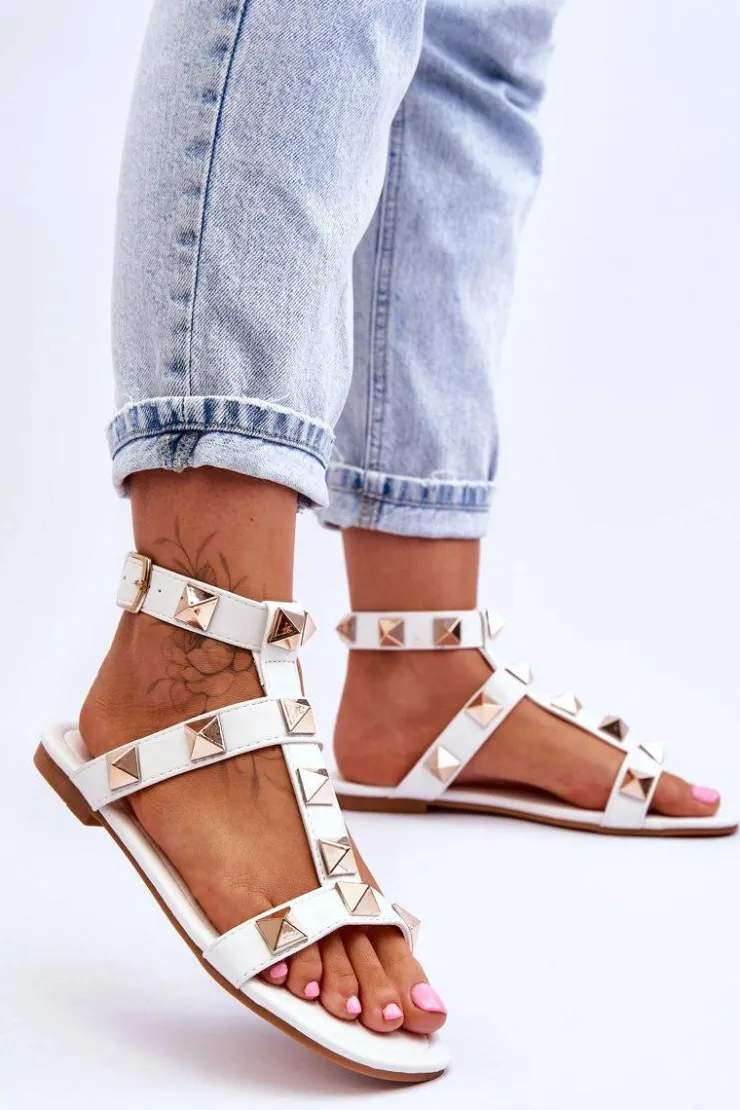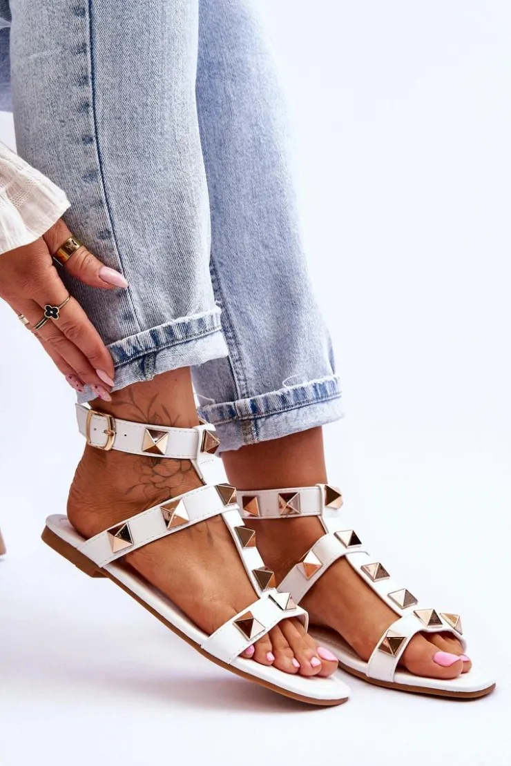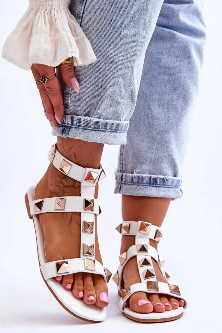 Damskie Boto Skórzane Damskie Sandały Z Dużymi Ćwiekami Białe Mishigan