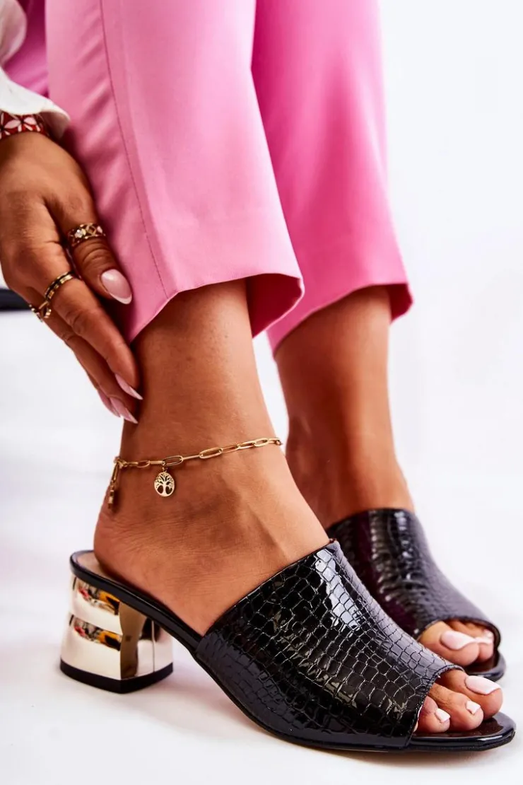 Modne, a zarazem wygodne klapki damskie zostały osadzone na obcasie w postaci klocka. Cholewka wykonana z naturalnej skóry. Nosek odkryty, zaokrąglony. Miękka wkładka została wykonana z naturalnej skóry. Model klasyczny, wsuwany. Świetnie sprawdzą się do wielu stylizacji. Idealnie dopasują się do tęgości nogi, dzięki skórzanej wyściółce. Spraw sobie radość kupując nową parę butów, które będą idealne na letnie dni! Przy wyborze rozmiaru prosimy sugerować się tabelą rozmiarów.