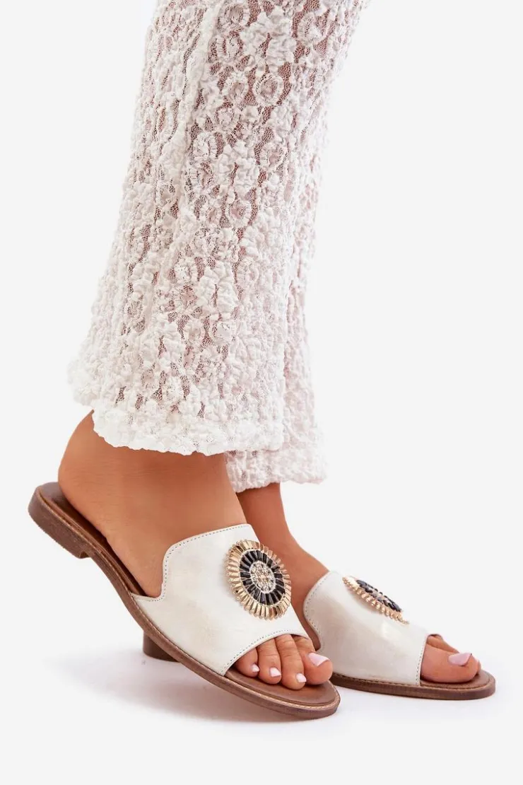 Damskie klapki wykonane z wysokiej jakości skóry naturalnej to połączenie elegancji i wygody. Osadzone na płaskim obcasie, zapewniają komfort noszenia przez cały dzień. Subtelna ozdoba na cholewce nadaje im wyjątkowego uroku i klasy, dzięki czemu świetnie sprawdzą się zarówno w casualowych, jak i bardziej eleganckich stylizacjach. Idealne na ciepłe dni, stanowią niezastąpiony dodatek do letnich sukienek, spodni czy spódnic. Przy wyborze rozmiaru prosimy sugerować się tabelą rozmiarów.