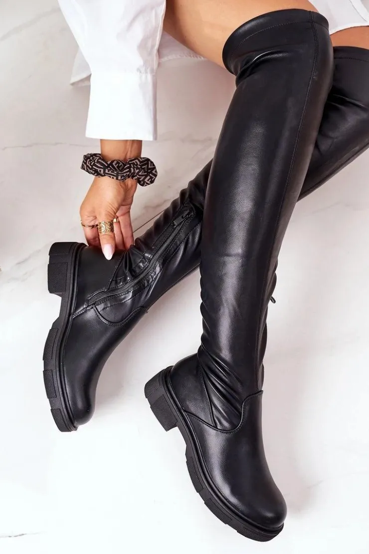 Kozaki za kolano wykonane z miękkiej skóry ekologicznej. Wszyty suwak ułatwi zakładanie.