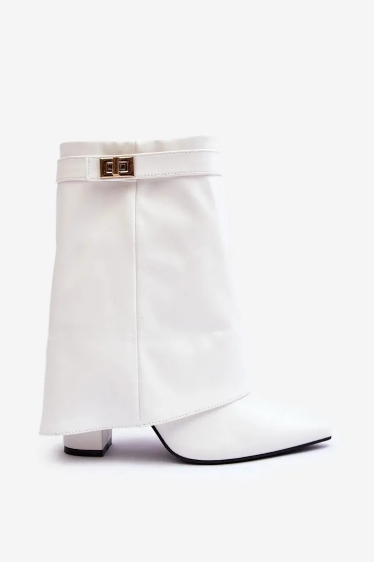 Damskie Boto Skórzane Ocieplane Botki Na Słupku Białe Chevie