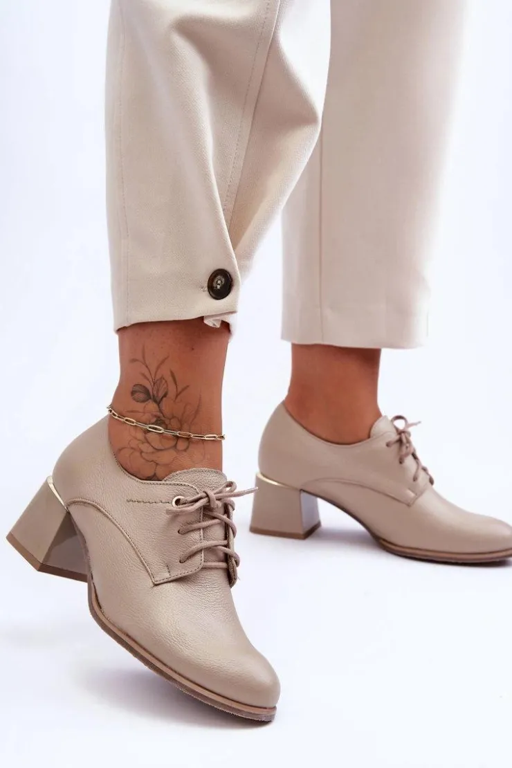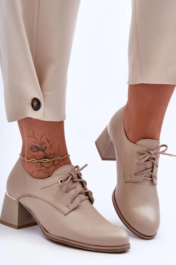 Eleganckie półbuty damskie zostały wykonane ze skóry naturalnej i osadzone na obcasie. Model ten posiada usztywniany zapiętek oraz sznurowanie. Miękka, skórzana wkładka zapewni komfortowe użytkowanie obuwia. Buty te sprawdzą się w wielu stylizacjach! Koniecznie sprawdź całą naszą kolekcję półbutów! Przy wyborze rozmiaru prosimy sugerować się tabelą rozmiarów.