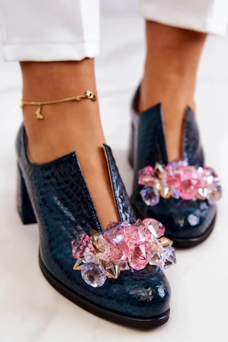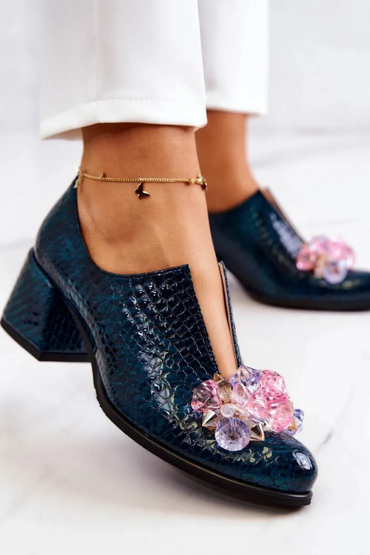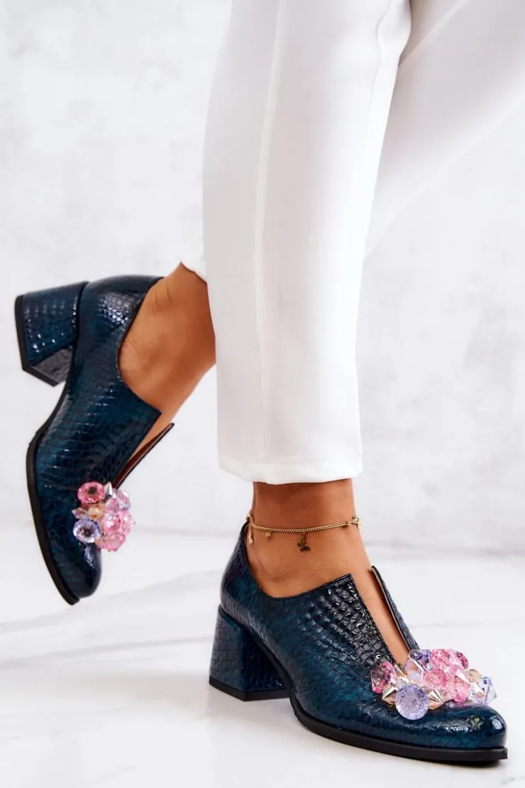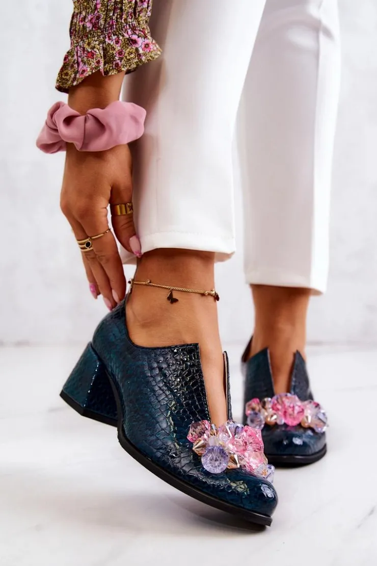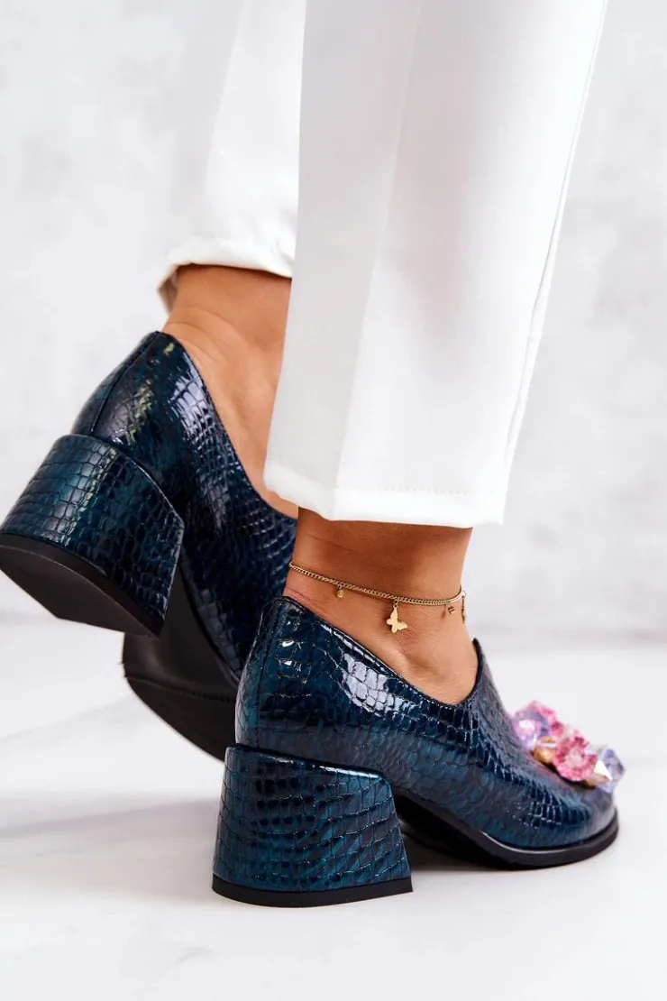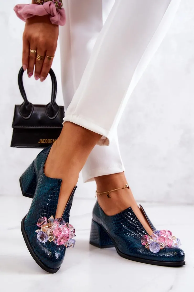 Eleganckie półbuty na niskim obcasie w postaci szerokiego słupka. Zostały wykonane z naturalnej skóry. Posiadają miękką wkładkę. Ozdoba przyszyta na przodzie oraz rozcięcie sprawia, że są naprawdę wyjątkowe. Buty posiadają nosek w kształcie migdała. Koniecznie sprawdź także pozostałe modele półbutów dostępnych w naszej ofercie! Przy wyborze rozmiaru prosimy sugerować się tabelą rozmiarów.