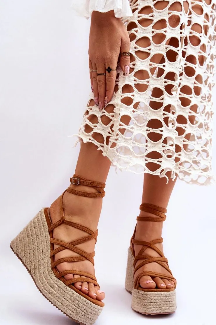 Idealne sandały na lato! Posiadają wysoki koturn oraz platformę ozdobione jutową plecionką. Posiadają odkryty, kwadratowy nosek. Sandałki są zapinane na długi, regulowany pasek ze sprzączką. Niezwykle miękka, wykonana z eko skóry wkładka jest bardzo wygodna w użytkowaniu nawet przez cały dzień. Te buty będą znakomitym dodatkiem do zwiewnej sukienki czy spódniczki. Przy wyborze rozmiaru prosimy kierować tabelą rozmiarów.