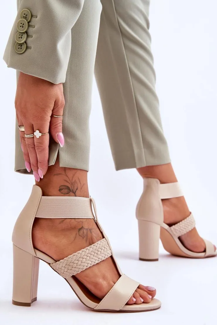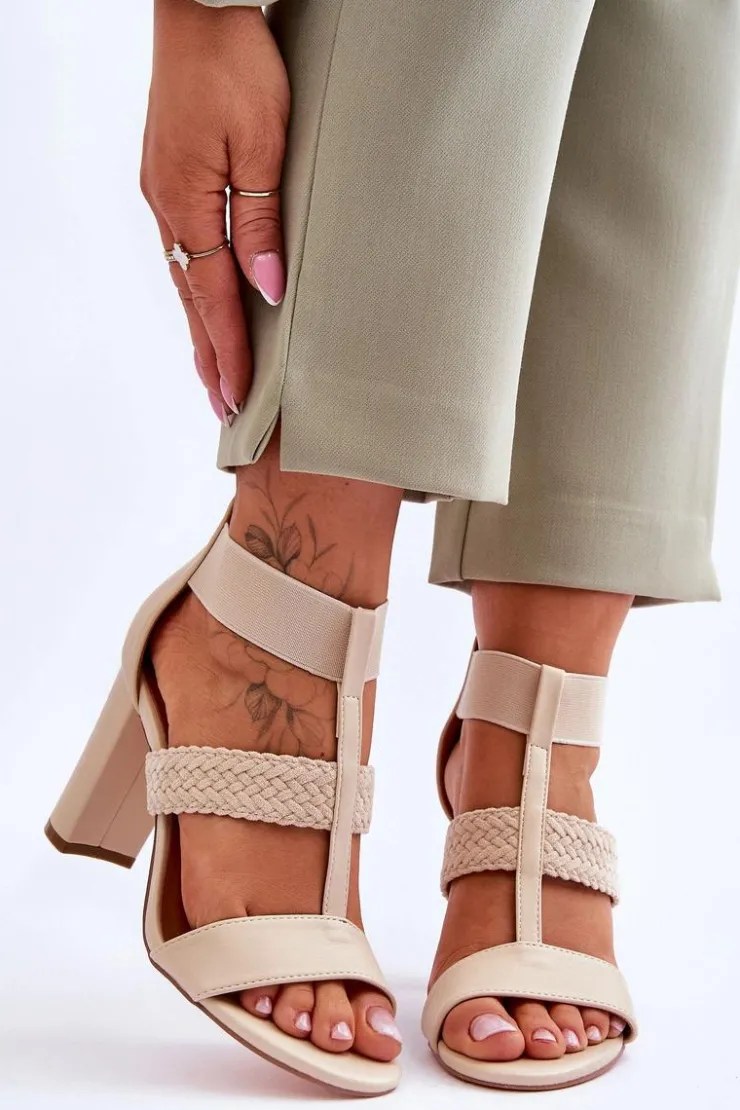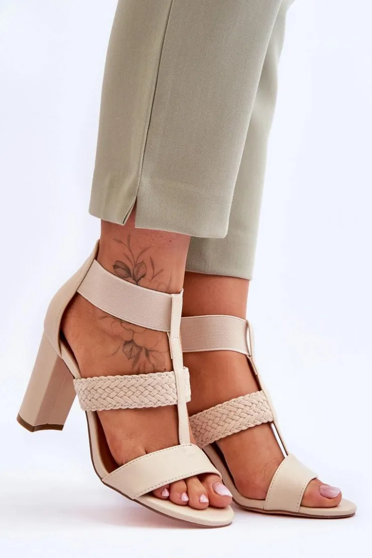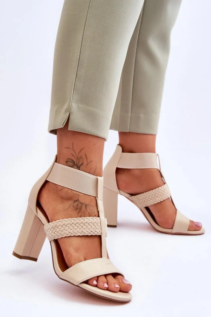 Damskie sandałki o fasonie botków świetnie sprawdzą się w cieplejsze dni. Model ten został wykonany z eko skóry. Zostały osadzone na stabilnym obcasie w postaci słupka. Sandałki posiadają na środku pleciony pasek oraz u góry gumkę pozwalającą na odpowiednie dopasowanie do tęgości nogi. Buty te posiadają miękką wkładkę. Przy wyborze rozmiaru prosimy sugerować się tabelą rozmiarów.