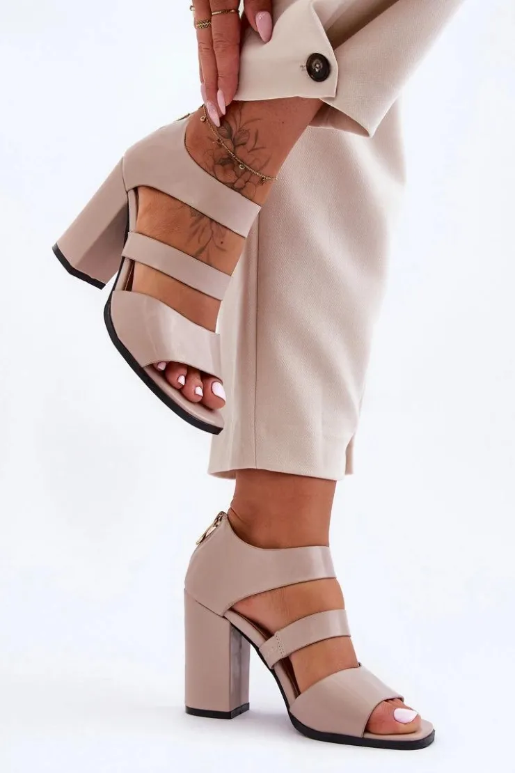 Damskie sandałki to MUST HAVE na ważne uroczystości i spotkania w letnie dni! Model ten został wykonany z eko skóry. Idealne na cieplejsze dni! Miękka wkładka ze skóry zapewni komfortowe użytkowanie obuwia. Sandałki posiadają zapinanie z tyłu cholewki na suwak. Model ten został osadzony na stabilnym obcasie w postaci słupka. Przy wyborze rozmiaru prosimy sugerować się tabelą rozmiarów.