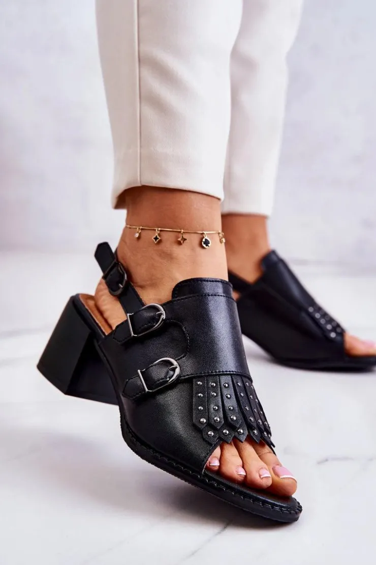 Sandały wykonane z eko skóry utrzymane w jednolitej kolorystyce. Osadzone na masywnym obcasie w postaci słupka. Ozdobione ćwiekami oraz sprzączkami z przodu cholewki. Posiadają regulowany pasek zapinany wokół kostki na sprzączkę. Wkładka z naturalnej skóry zapewni komfortowe użytkowanie. Uniwersalne, a jednocześnie eleganckie sandałki będą pasować do wielu outfitów! Koniecznie powinnaś je mieć w swojej szafie! Przy wyborze rozmiaru prosimy sugerować się tabelą rozmiarów.