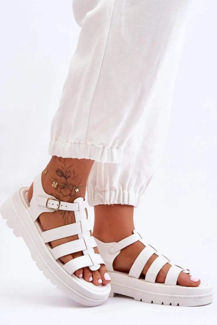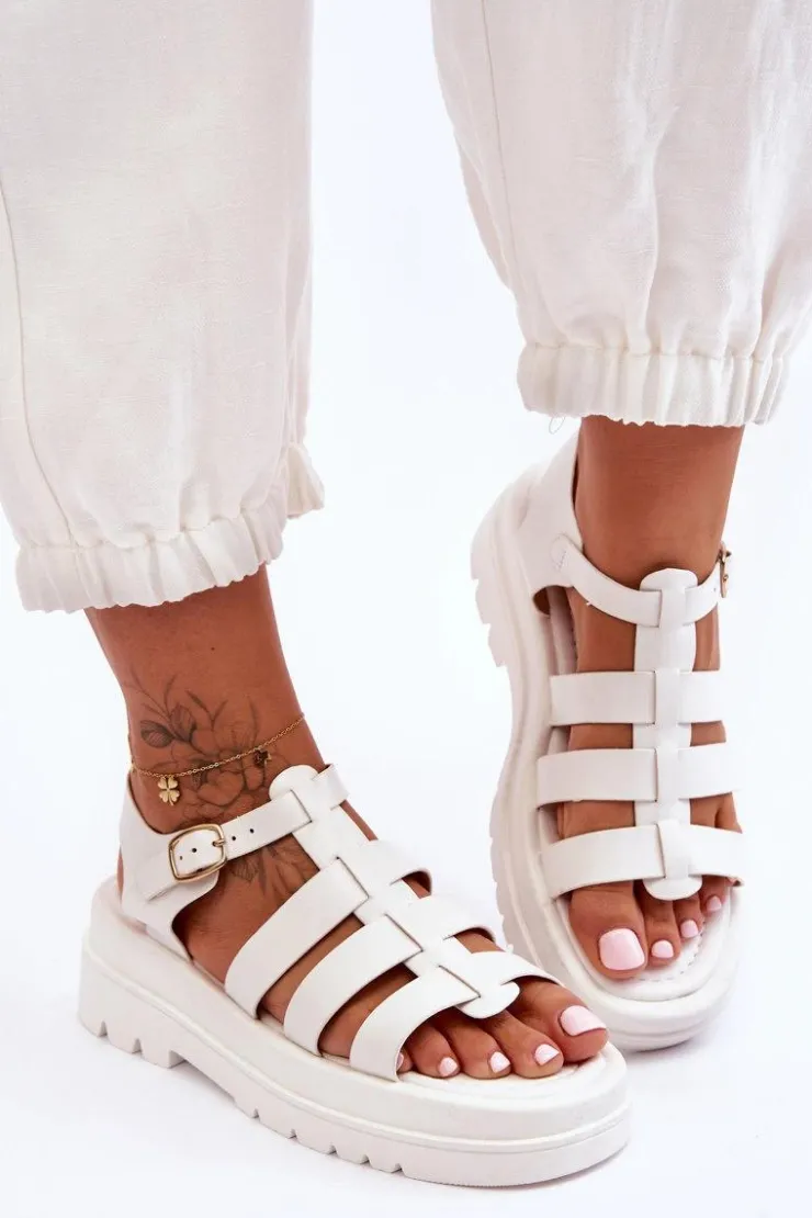Przewiewne sandały damskie zostały wykonane z eko skóry. Zapinane na regulowany pasek ze sprzączką. Sandałki posiadają odkryty, lekko kwadratowy nosek oraz odkrytą piętę. Miękka, eko skórzana wkładka zapewni wygodę podczas użytkowania. Płaski obcas oraz platforma sprawiają, że buty są niezwykle stabilne. Te sandałki to idealny fason na upalne dni. Świetnie będą prezentować się z zarówno ze spodniami, jak i sukienkami. Przy wyborze rozmiaru prosimy sugerować się tabelą rozmiarów.