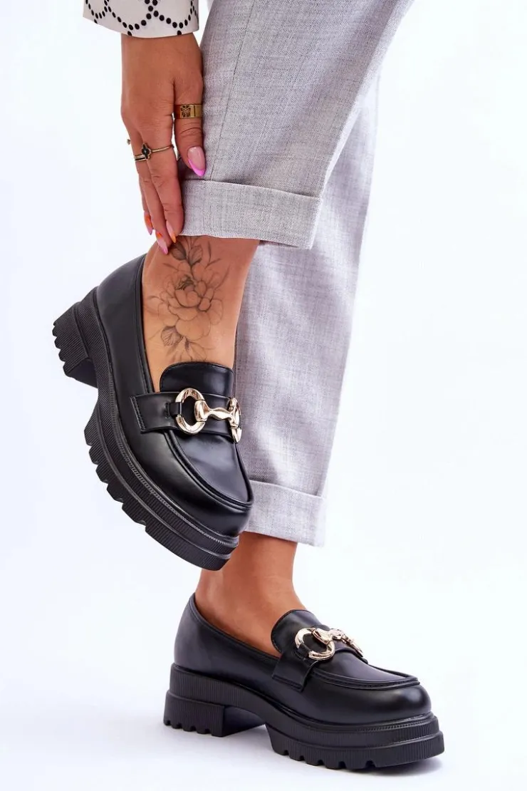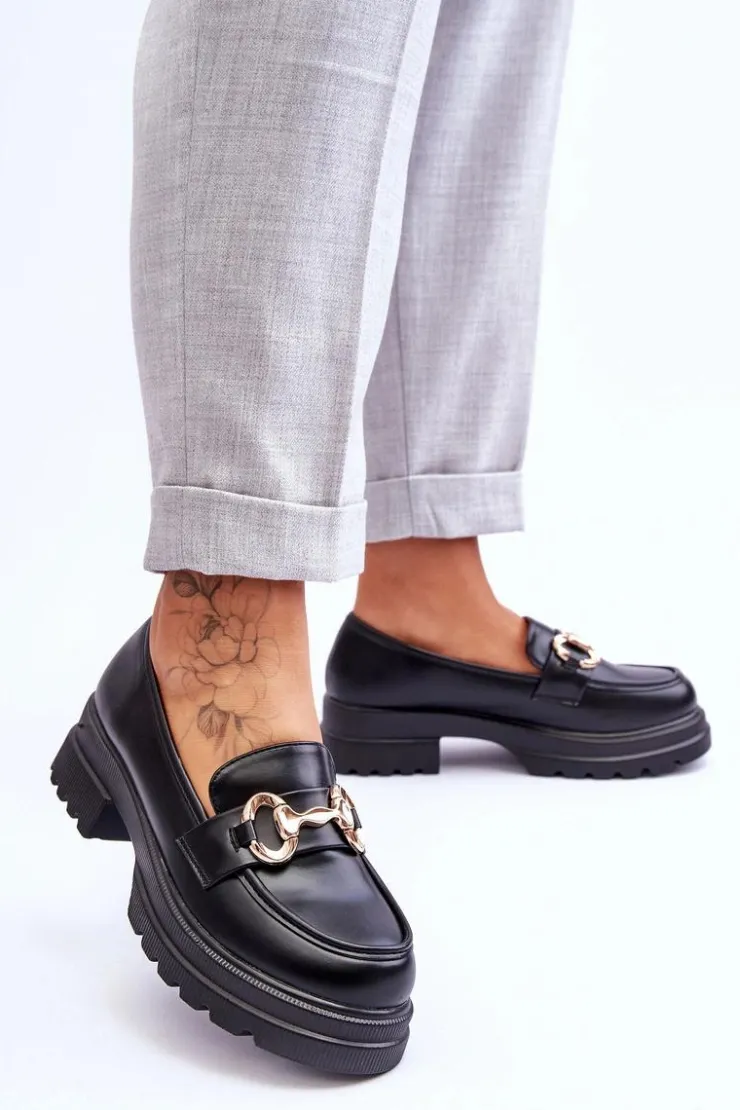 Klasyczne, damskie mokasyny, które świetnie sprawdzą się w wielu stylizacjach! Zostały osadzone na płaskim obcasie i platformie. Posiadają z przodu ozdobę z tworzywa sztucznego. Model ten został wykonany z eko skóry. Zapiętek w tych butach jest delikatnie usztywniany. Z pewnością wykorzystasz je w sezonie wiosenno-jesiennym! Przy wyborze rozmiaru prosimy sugerować się tabelą rozmiarów.