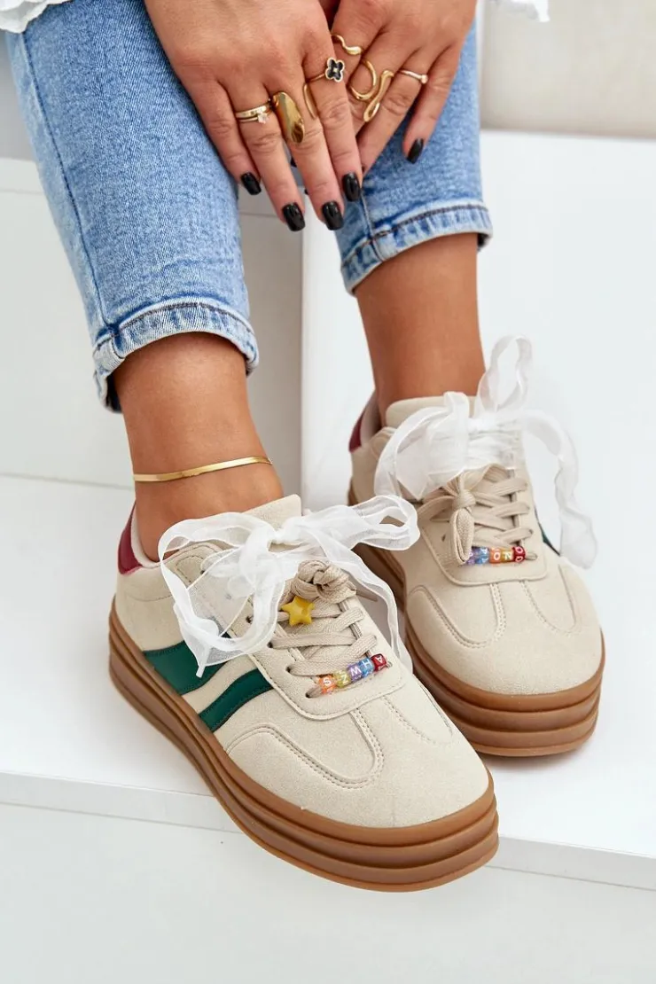 Modne sneakersy wykonane z eko zamszu to świetna propozycja dla miłośniczek wygody i stylowego wyglądu. Osadzone na platformie, nie tylko dodają kilku centymetrów wzrostu, ale także doskonale podkreślają nowoczesny charakter obuwia. Sznurowanie zostało urozmaicone uroczymi przypinkami, które nadają dziewczęcego uroku i oryginalności. Idealnie sprawdzą się zarówno w codziennych stylizacjach, jak i podczas spotkań z przyjaciółmi. Przy wyborze rozmiaru prosimy kierować tabelą rozmiarów.