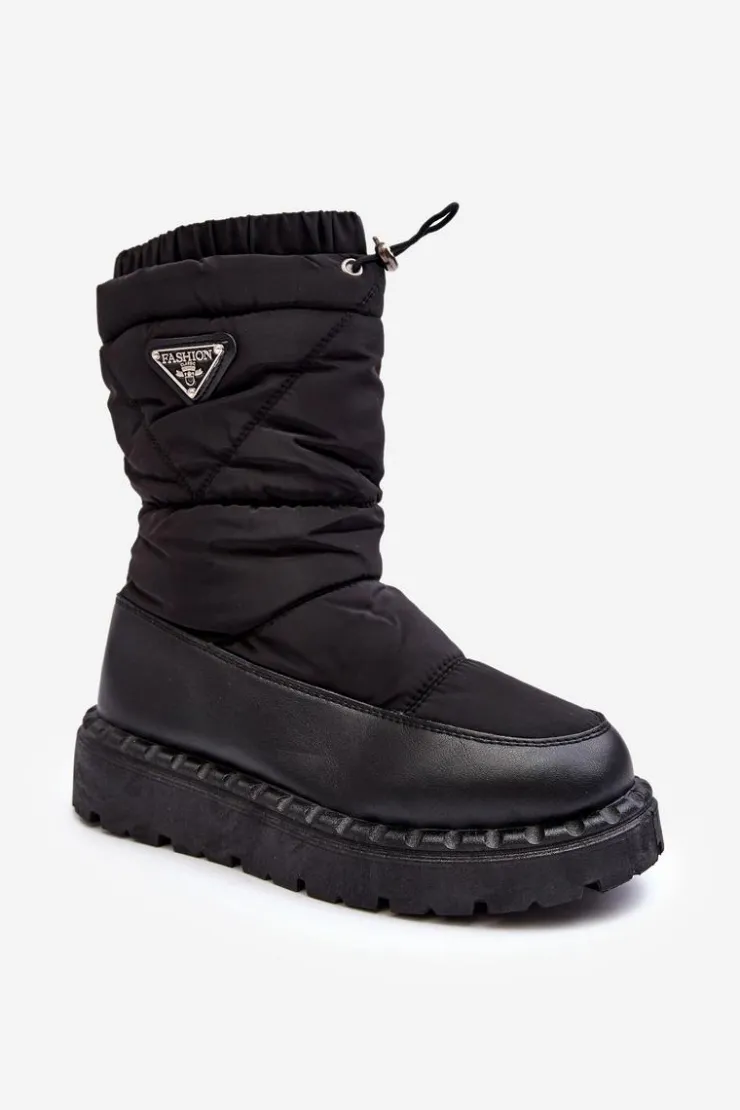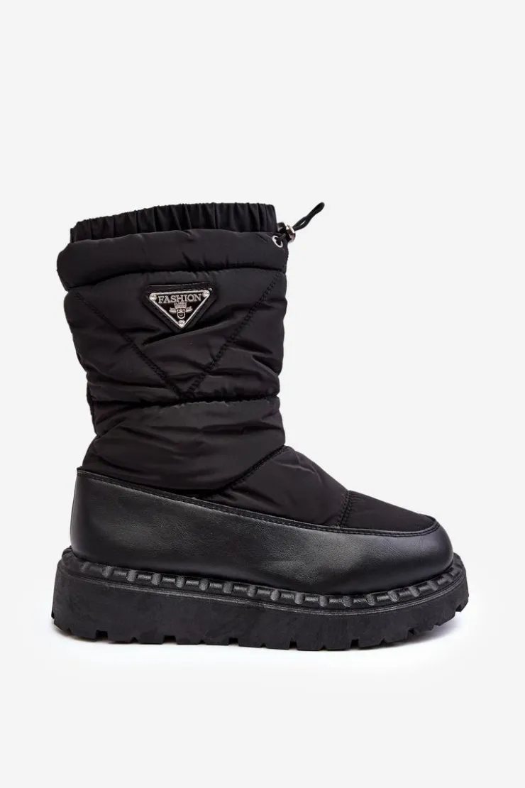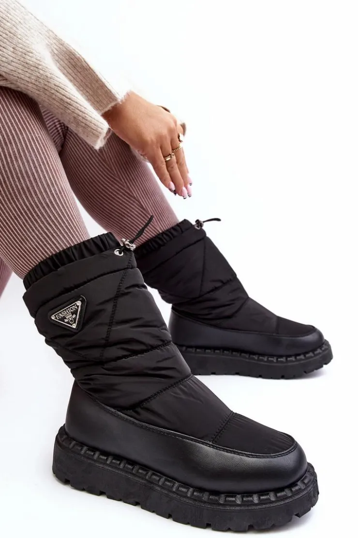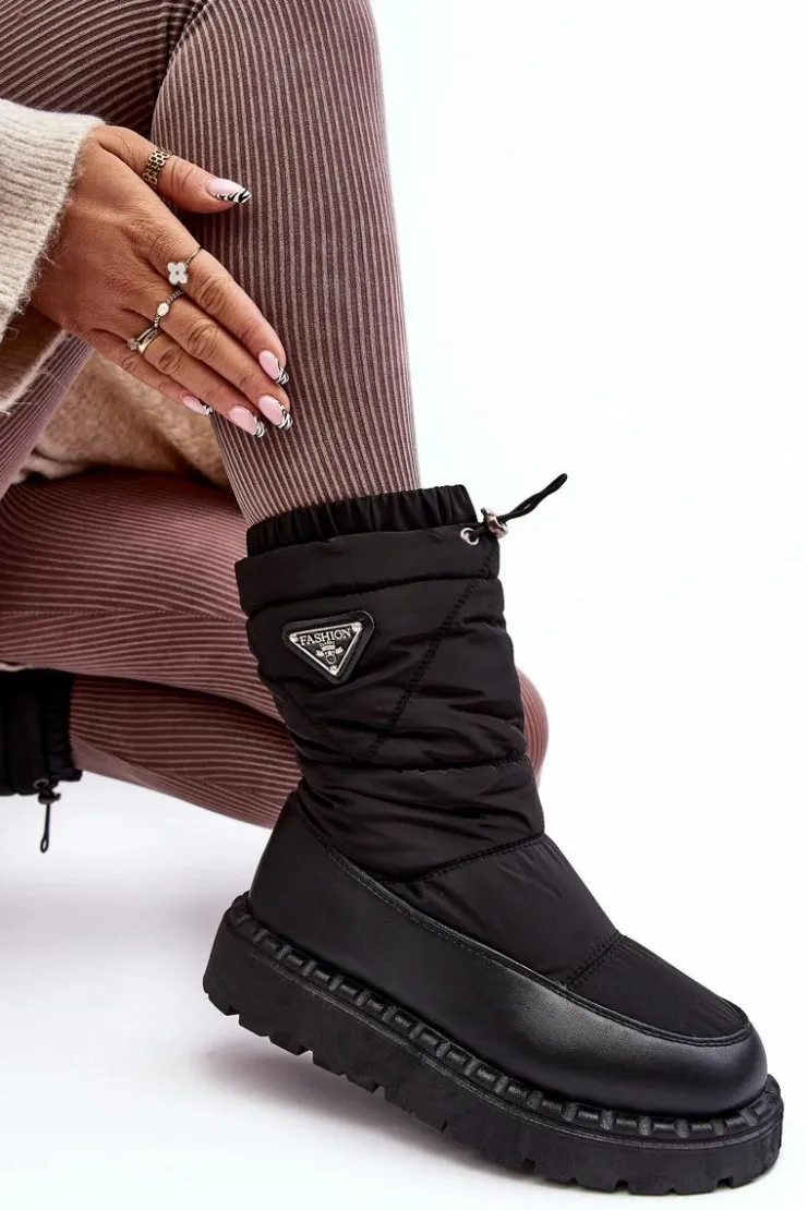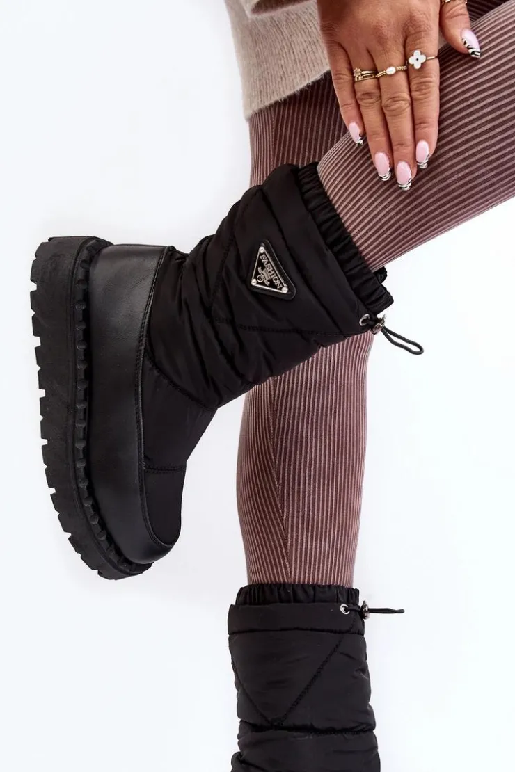 Damskie Boto Śniegowce Damskie Na Grubej Podeszwie Czarne Lureta