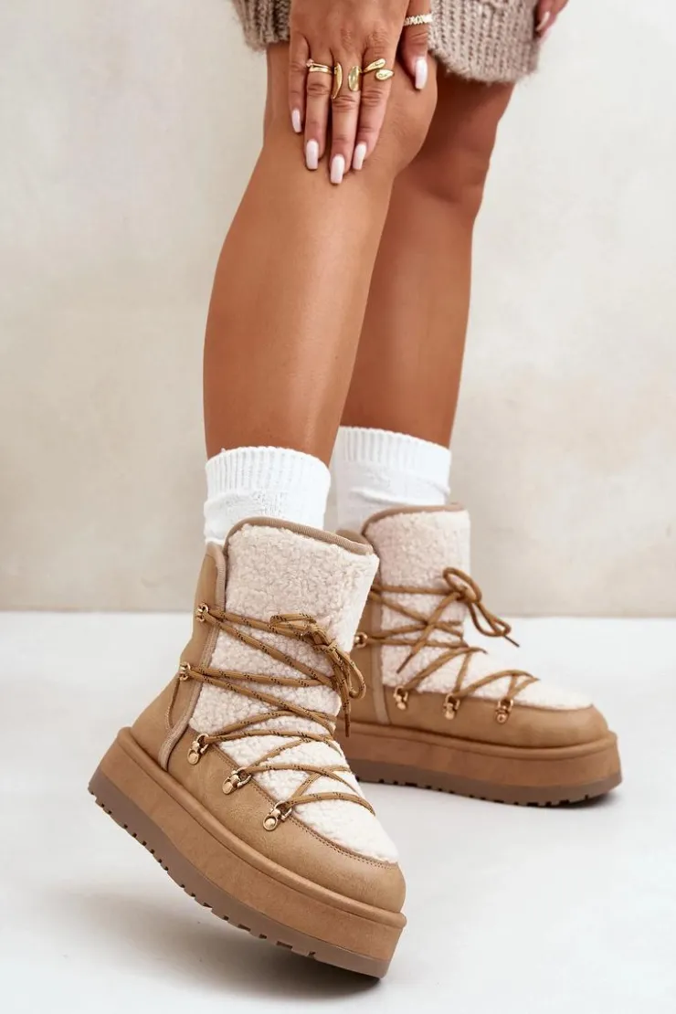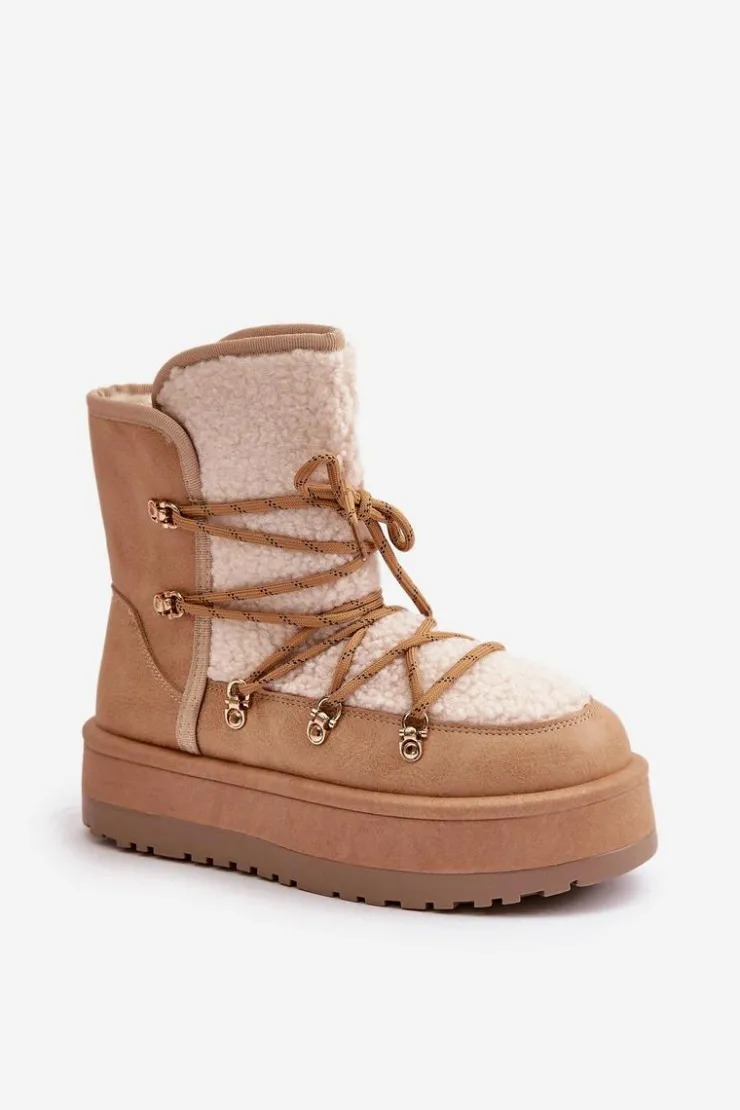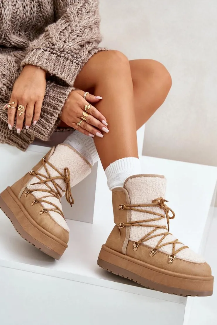 Damskie śniegowce na masywnej platformie, która doskonale odizoluje od zimnego podłoża. Środek ocieplony grubym futerkiem, co zapewni ciepło w mroźne dni. Cholewka z wiązaniem i syntetycznym kożuszkiem. Koniecznie powinnaś je mieć w swojej zimowej garderobie! Przy wyborze rozmiaru prosimy sugerować się tabelą rozmiarów.