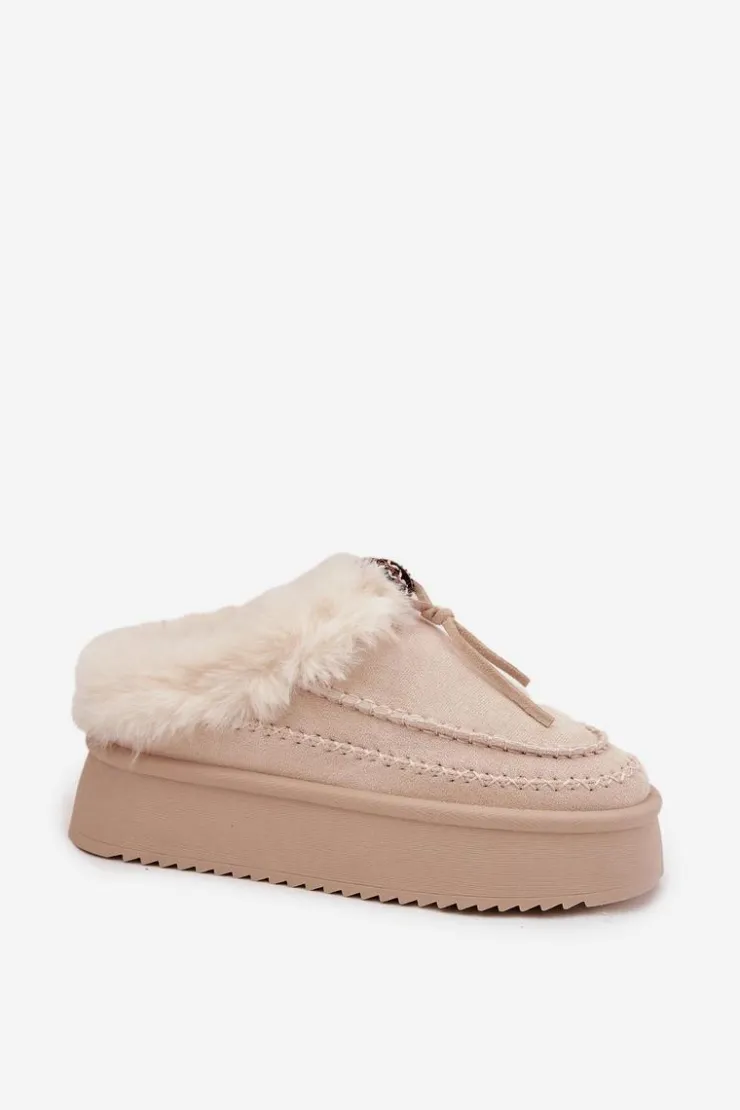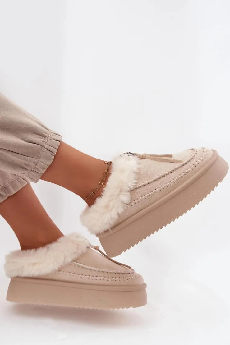 Śniegowce damskie wykonane z eko zamszu to idealne połączenie stylu i wygody na zimowe dni. Osadzone na platformie, która delikatnie wysmukla sylwetkę i doskonale izoluje od chłodnego podłoża, gwarantują komfort podczas noszenia. Górna część cholewki ozdobiona została miękkim futerkiem i dekoracyjnym paseczkiem, co nadaje całości modnego, zimowego charakteru. Wnętrze butów również ocieplone jest futerkiem, zapewniając ciepło i przyjemne otulenie stóp nawet w mroźne dni. To stylowe śniegowce, które świetnie sprawdzą się w codziennych zimowych stylizacjach.