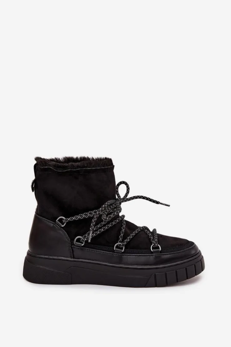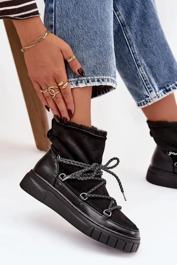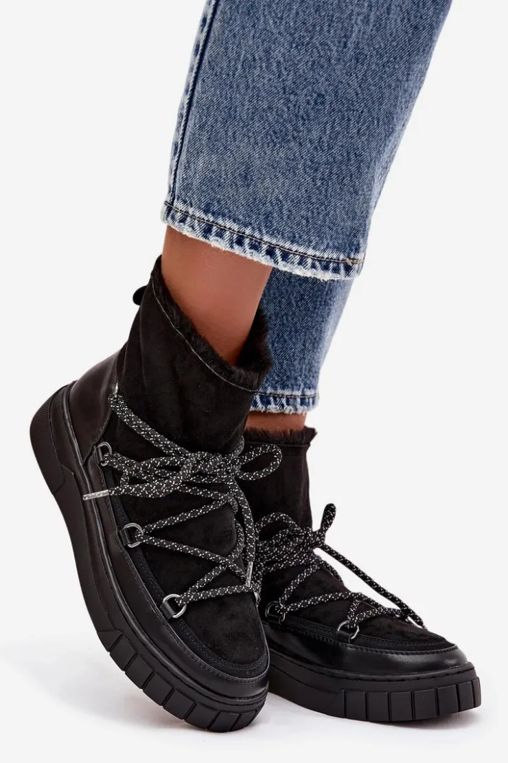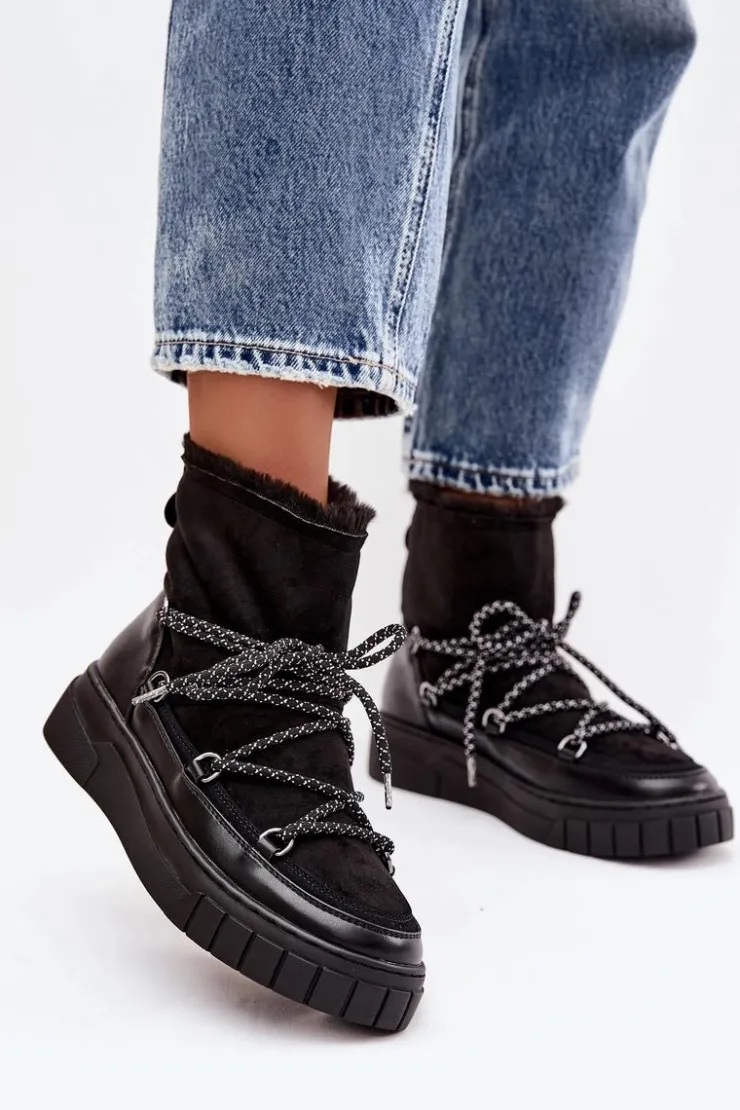 Damskie Boto Śniegowce Damskie Z Wiązaniem Czarne Isalisse