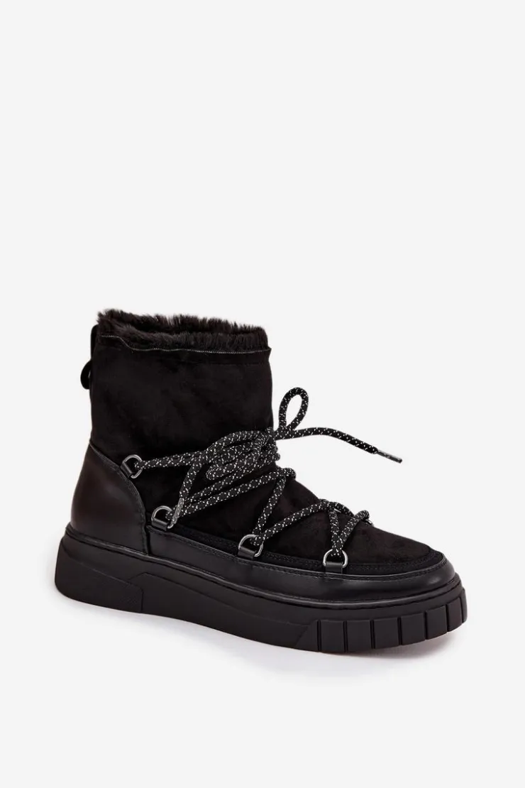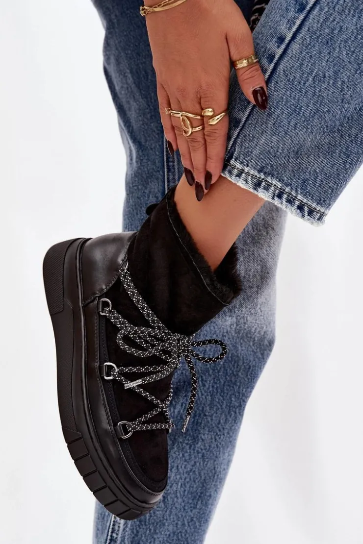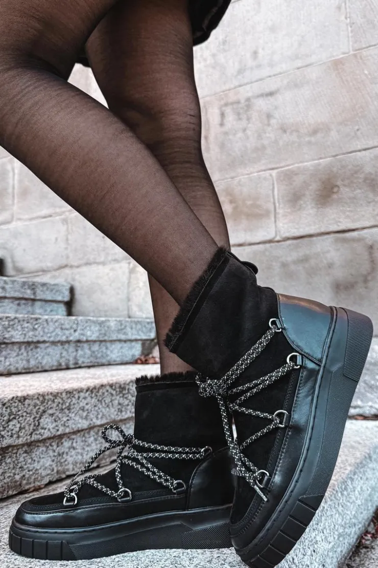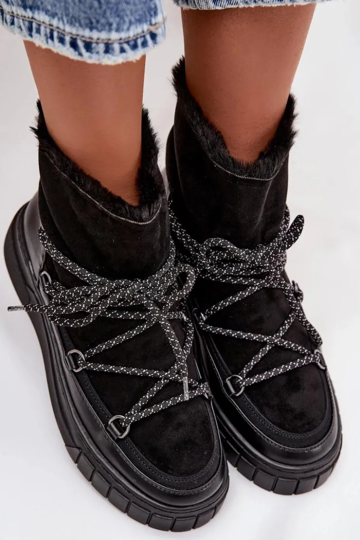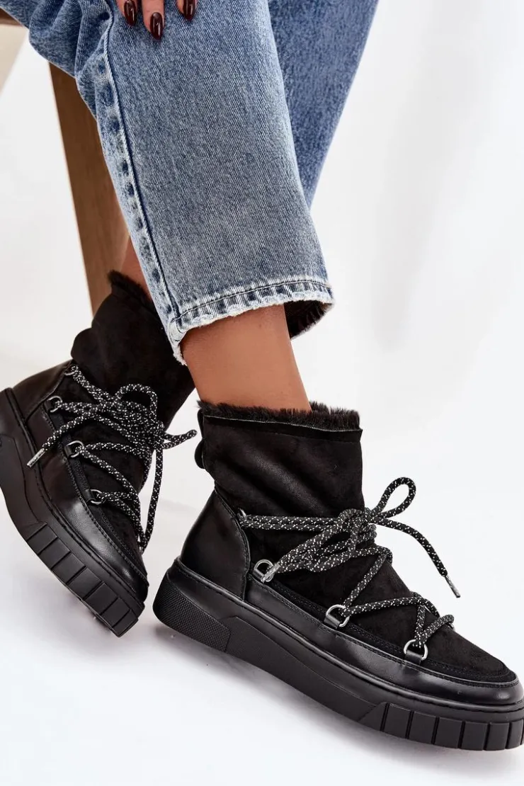 Damskie Boto Śniegowce Damskie Z Wiązaniem Czarne Isalisse