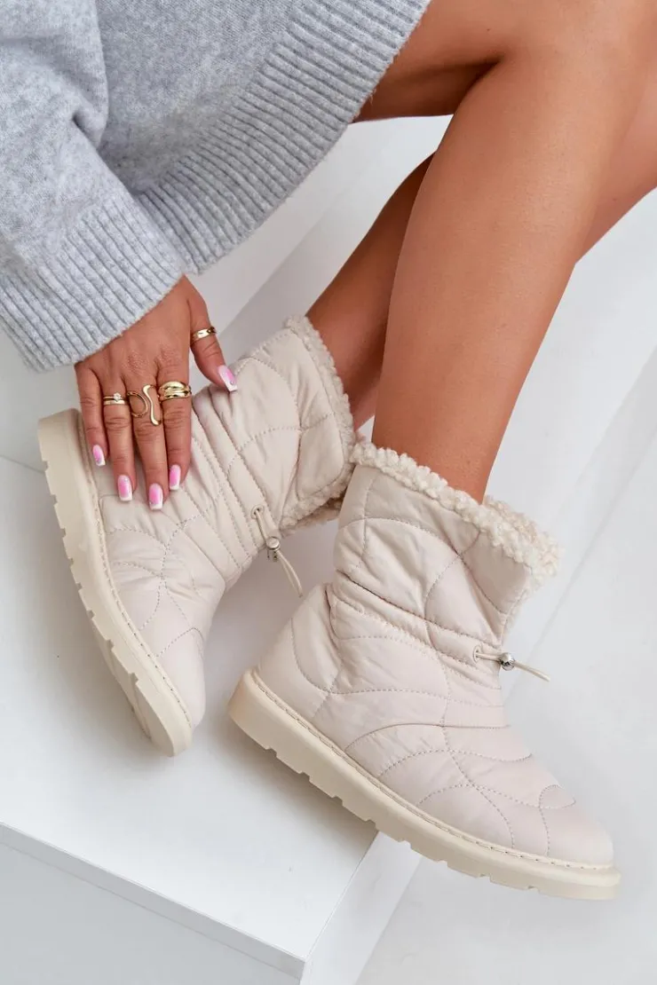 Śniegowce z przeszyciami na cholewce to stylowy i funkcjonalny wybór na zimowe dni. Model wsuwany ze ściągaczem zapewnia wygodne zakładanie i dopasowanie do nogi. Wnętrze ocieplane futerkiem typu baranek gwarantuje ciepło i komfort, nawet w najchłodniejsze dni. Idealne na zimowe spacery, łączą modny wygląd z praktycznymi rozwiązaniami. Przy wyborze rozmiaru prosimy sugerować się tabelą rozmiarów.