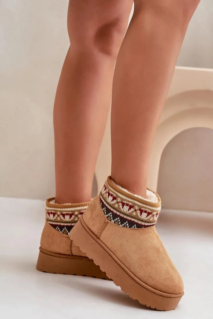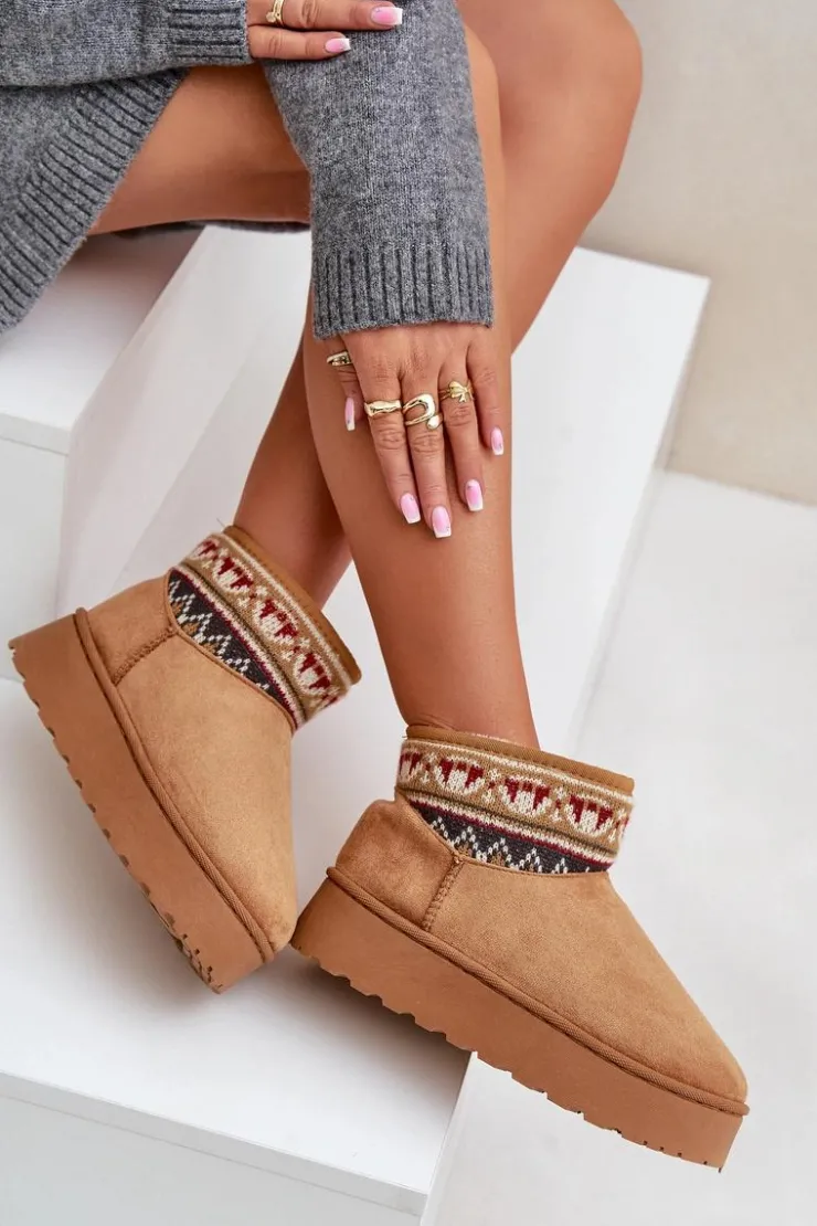 Damskie Boto Śniegowce Damskie Ze Wzorem Na Platformie Camel Avatharia