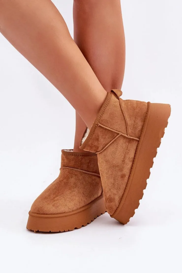 Stylowe śniegowce damskie wykonane z eko zamszu, które zapewnią komfort i ciepło w chłodne dni. Osadzone na modnej platformie, idealnie izolują od zimnego podłoża. Wnętrze ocieplane miękkim futerkiem, które zapewni ciepło w mroźne dni. Doskonałe połączenie wygody i stylowego wyglądu na zimowe dni. Przy wyborze rozmiaru prosimy kierować tabelą rozmiarów.