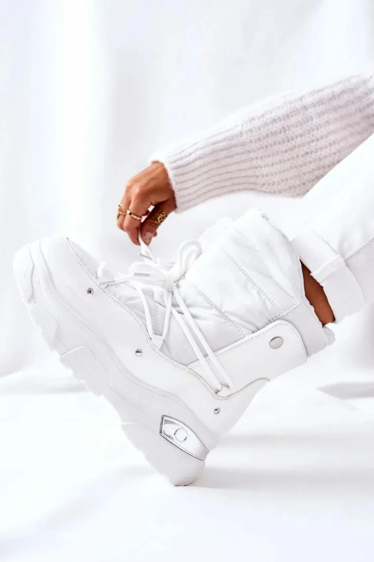 Szukasz ciepłych i wygodnych śniegowców? To dobrze trafiłaś! Śniegowce ocieplane przyjemnym w dotyku futerkiem. Zewnętrzna część buta została wykonana z materiału tekstylnego oraz lakierowanej eko skóry. Solidne sznurowanie zapewni idealne dopasowanie się buta do nogi. Wysoka platforma. Z tyłu podeszwy znajduje się ozdobny element. Przy wyborze rozmiaru prosimy kierować tabelą rozmiarów.