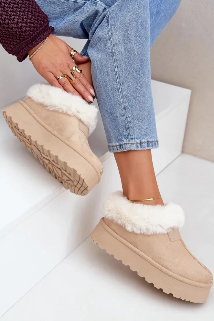 Śniegowce wykonane z eko zamszu to doskonała propozycja na chłodne dni. Posiadają niską cholewkę wykończoną miękkim futerkiem, które dodaje im nie tylko uroku, ale także zapewnia dodatkowe ciepło. Osadzone na platformie, są nie tylko modne, ale również wygodne w codziennym użytkowaniu. Idealne na zimowe spacery, gwarantują komfort i ochronę przed chłodem. Przy wyborze rozmiaru prosimy sugerować się tabelą rozmiarów.