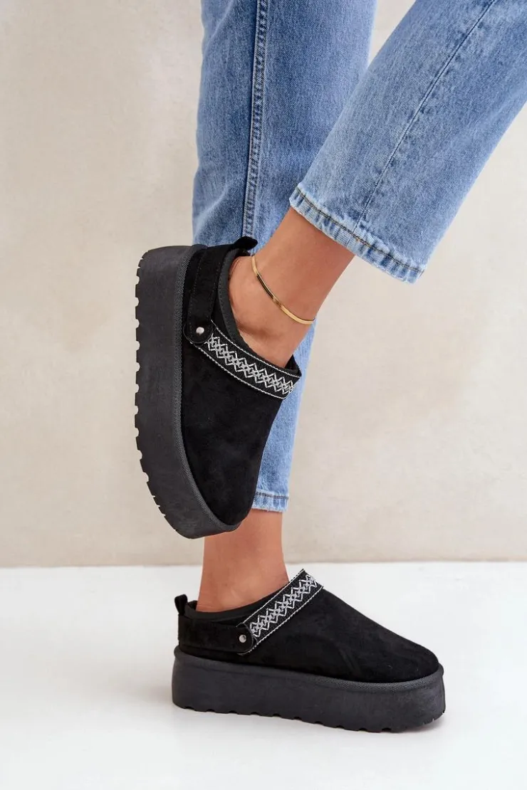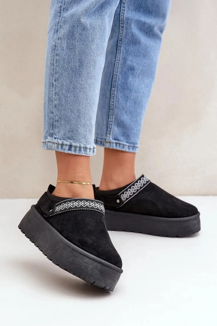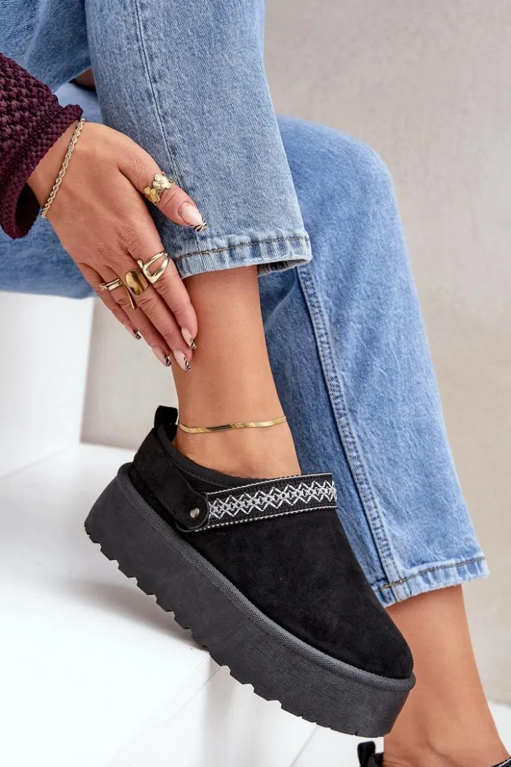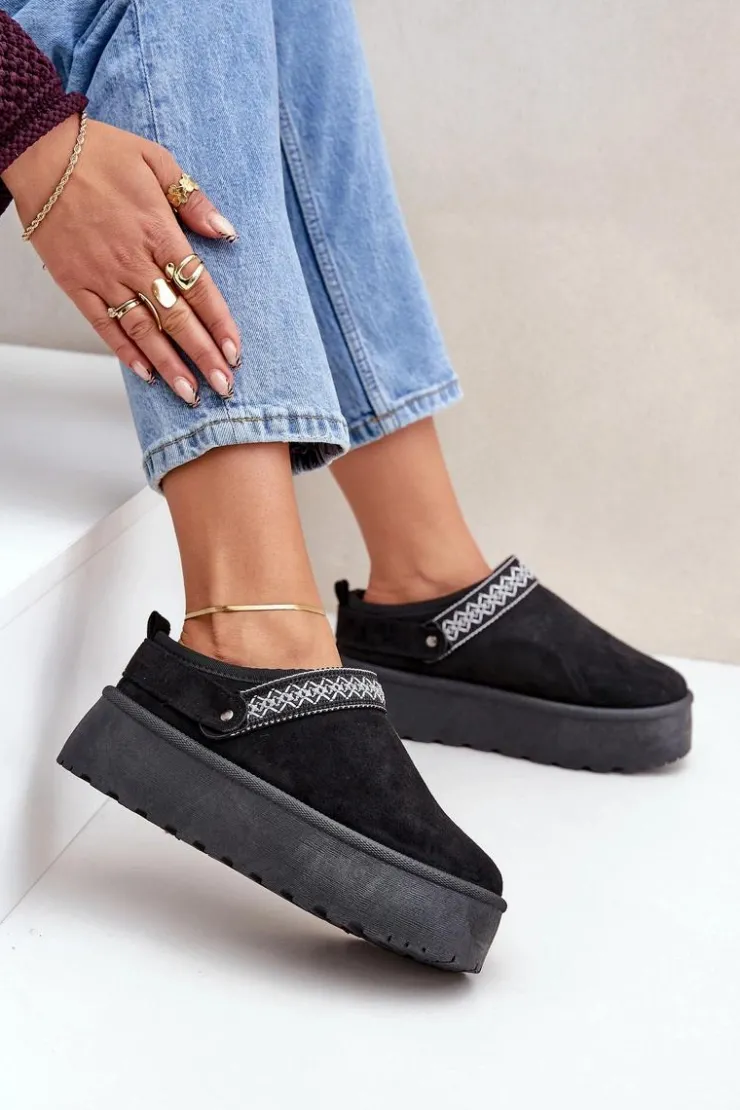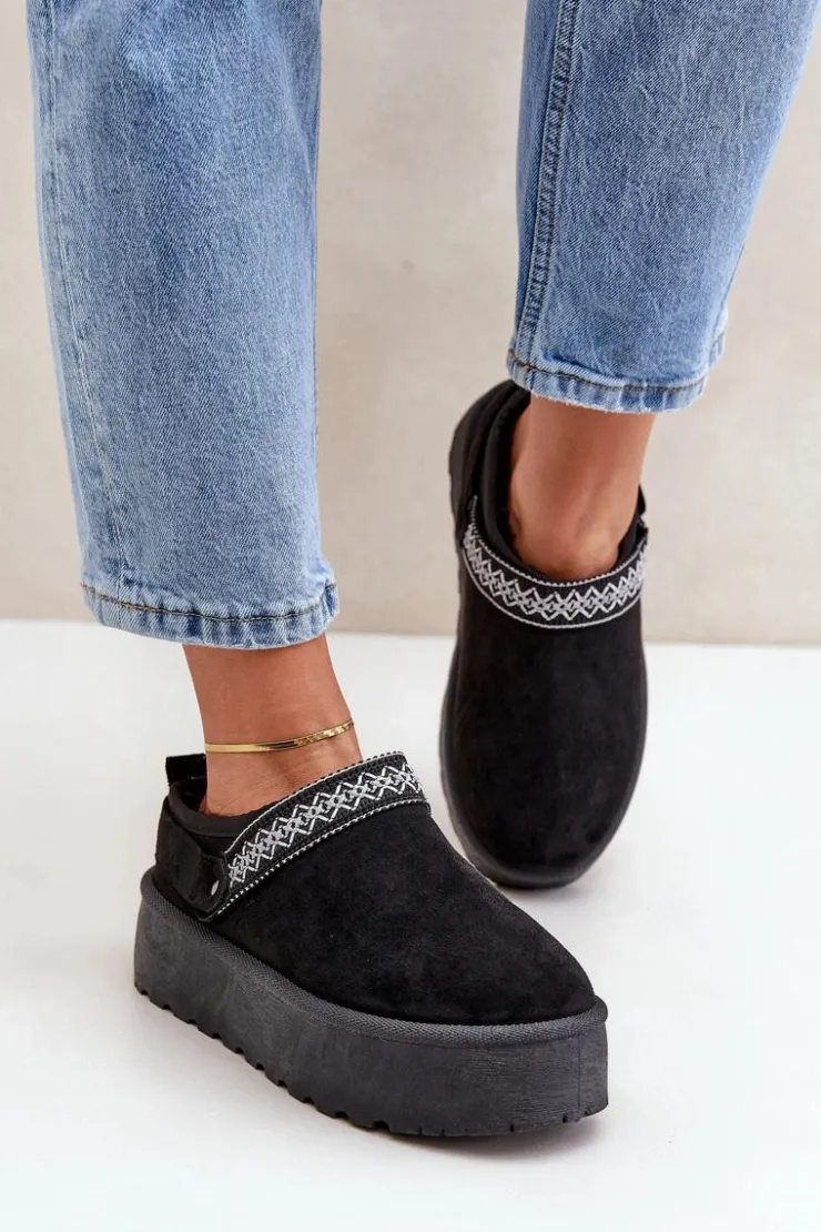 Damskie Boto Śniegowce Z Ozdobnym Haftem Czarne Selithria