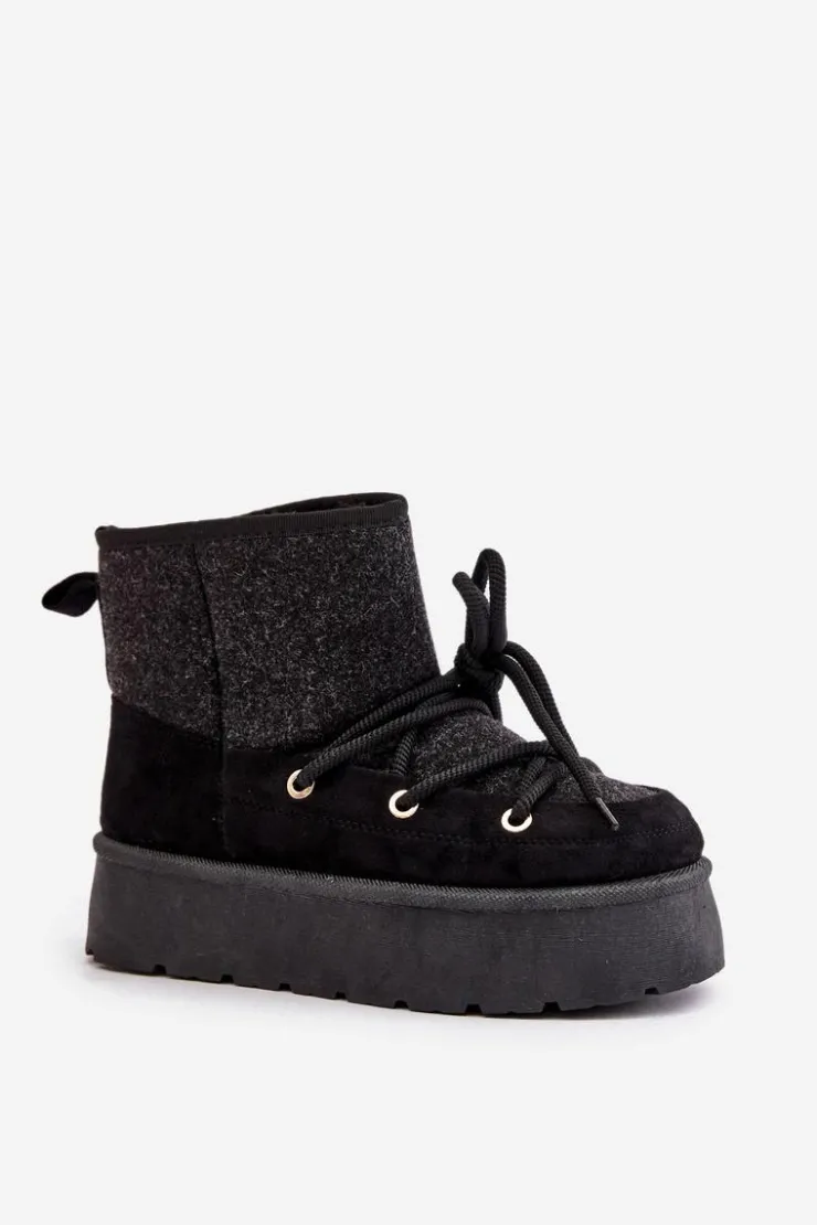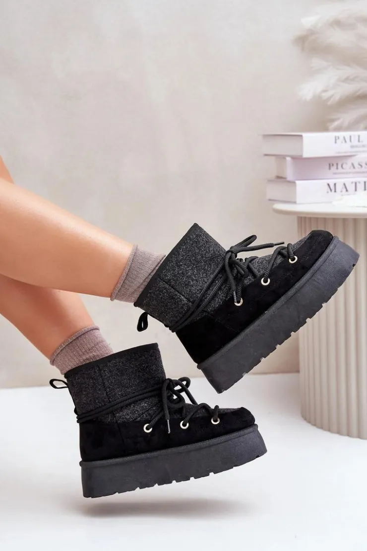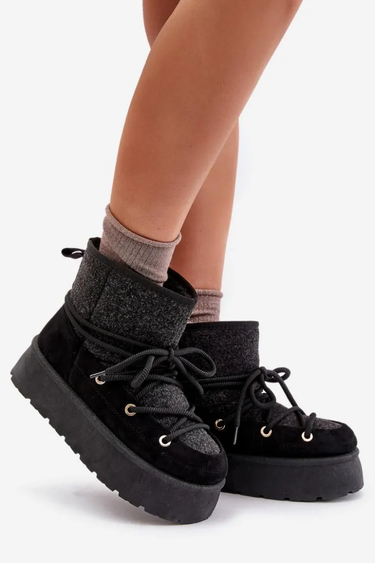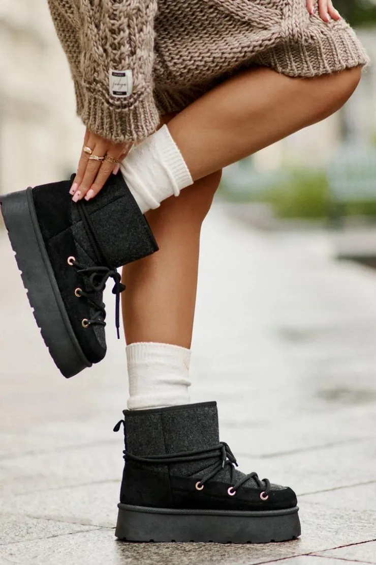 Stylowe śniegowce na platformie to idealne połączenie mody i komfortu. Posiadają praktyczne wiązanie z przodu, które zapewnia dobre dopasowanie do stopy. Wnętrze ocieplane futerkiem gwarantuje ciepło w mroźne dni. Wygodne i ciepłe, świetnie sprawdzą się zarówno na co dzień, jak i podczas zimowych spacerów. Przy wyborze rozmiaru prosimy sugerować się tabelą rozmiarów.