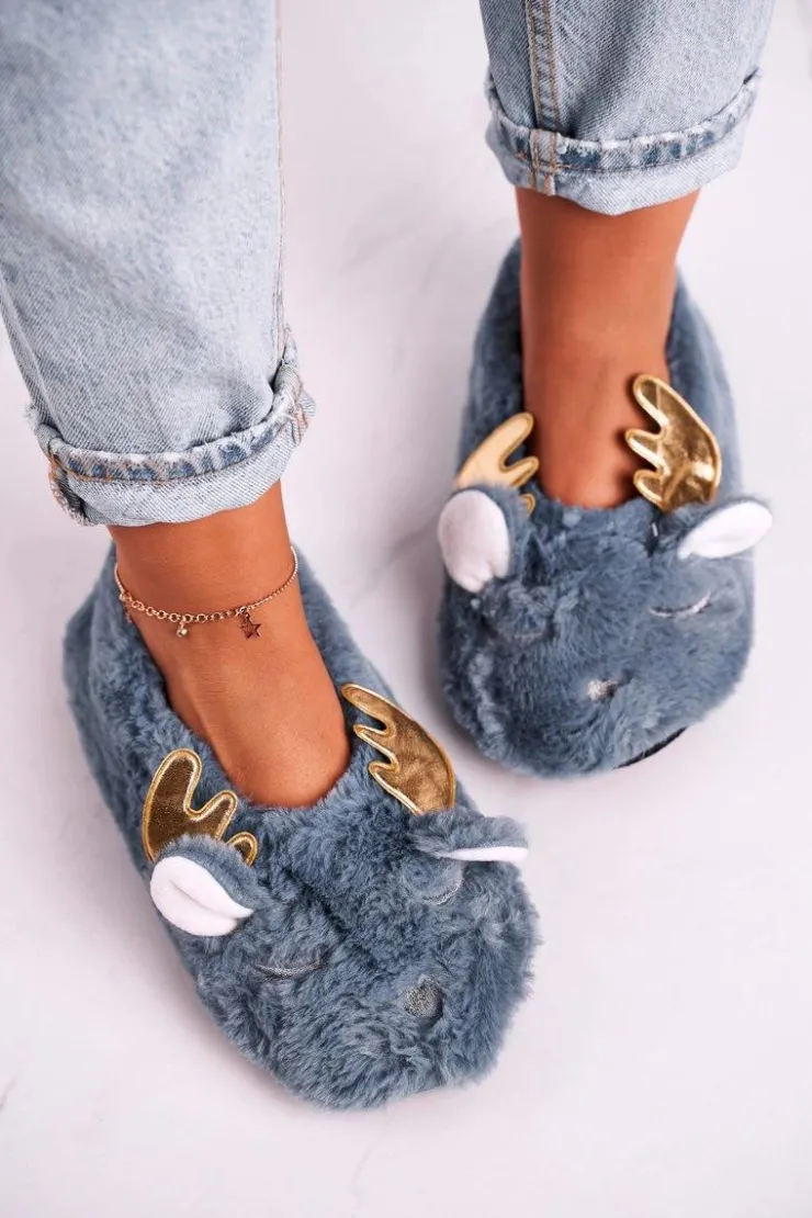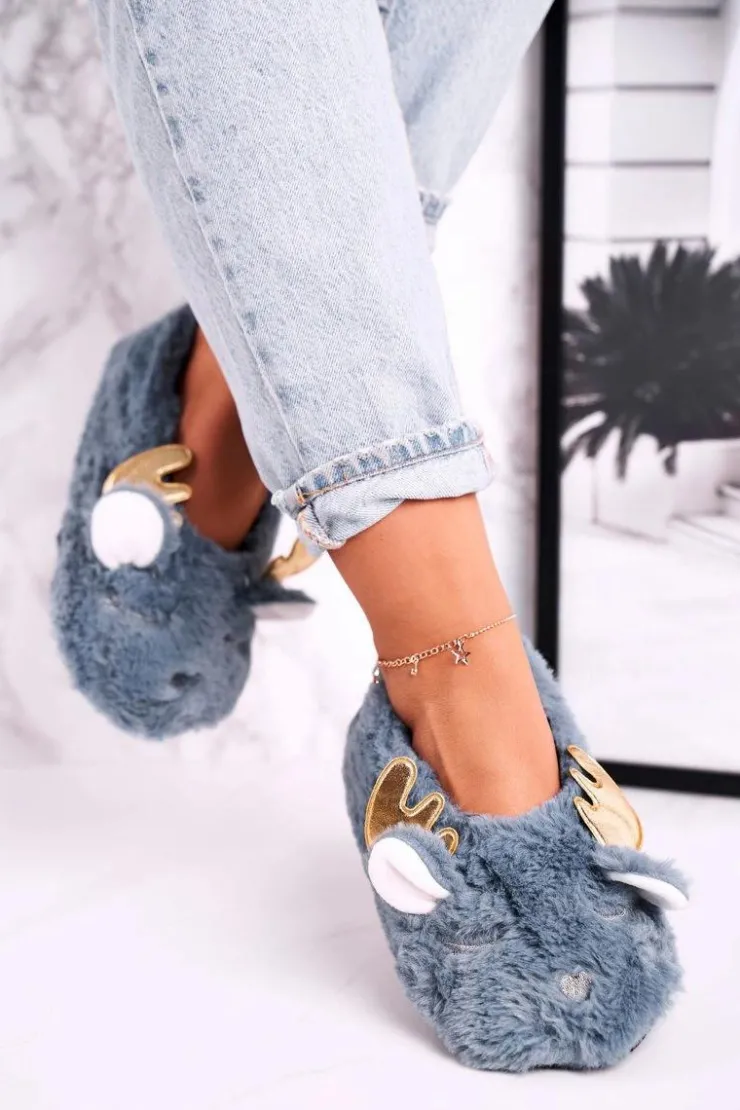 Damskie Boto Świąteczne Ocieplane Futrzane Papcie Niebieskie Jingle Bells