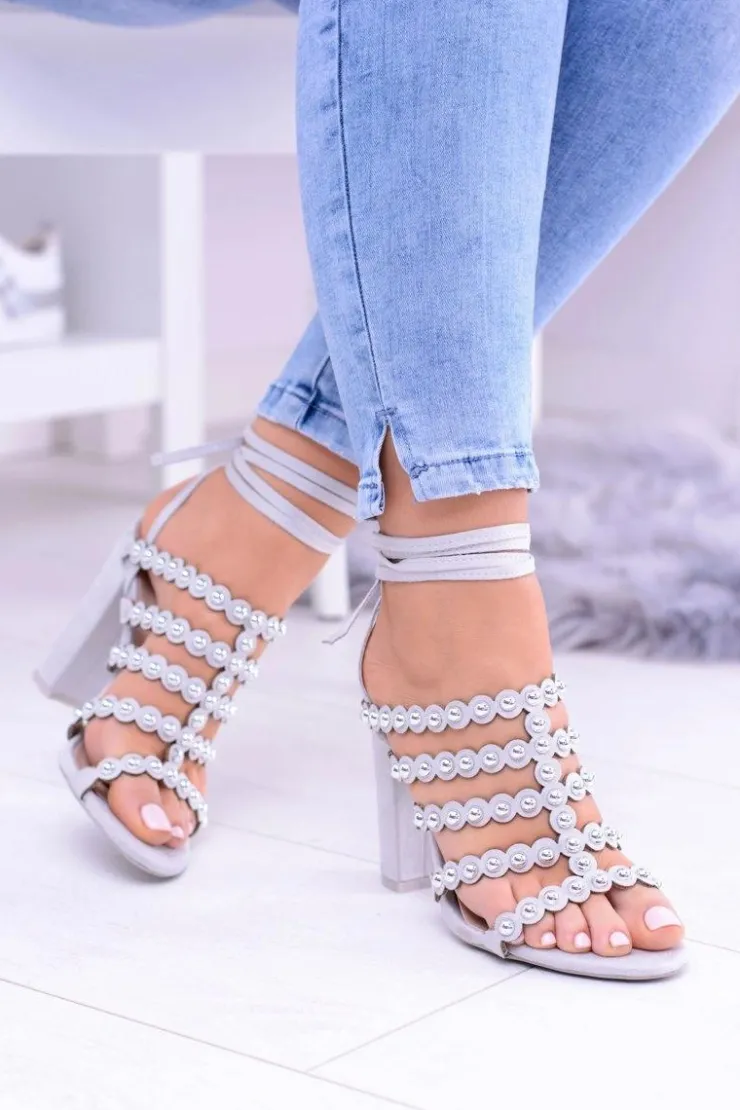 Damskie Boto Szare Damskie Sandały na Słupku Ysmira