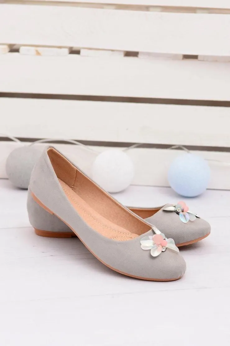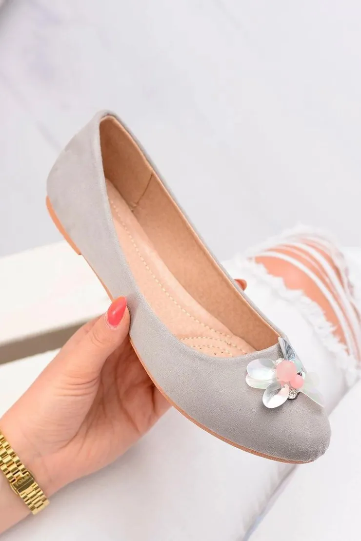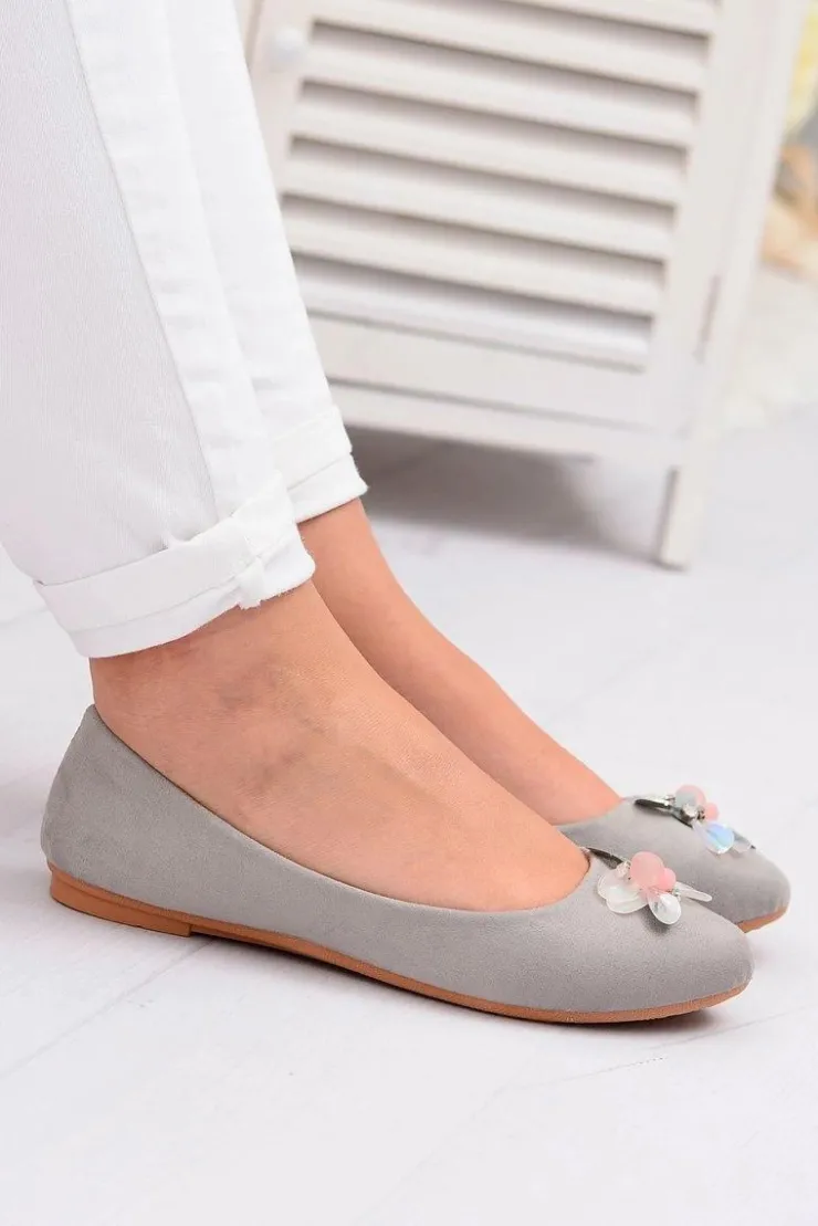 Damskie Boto Szare Zamszowe Damskie Balerinki Blume