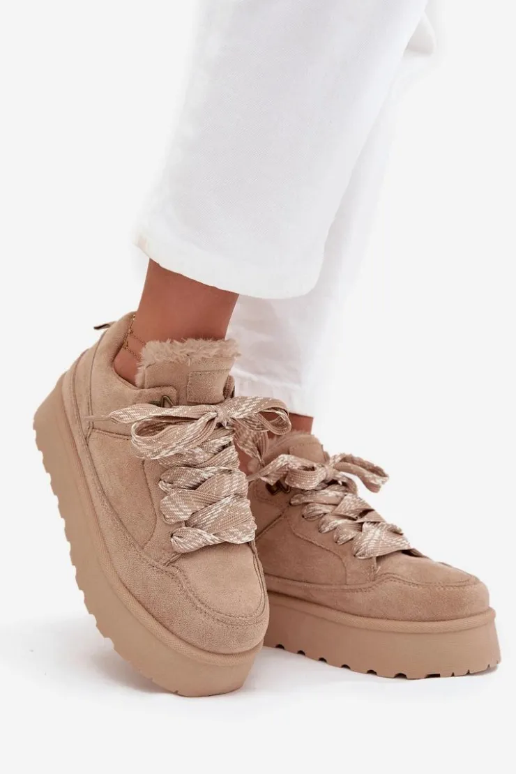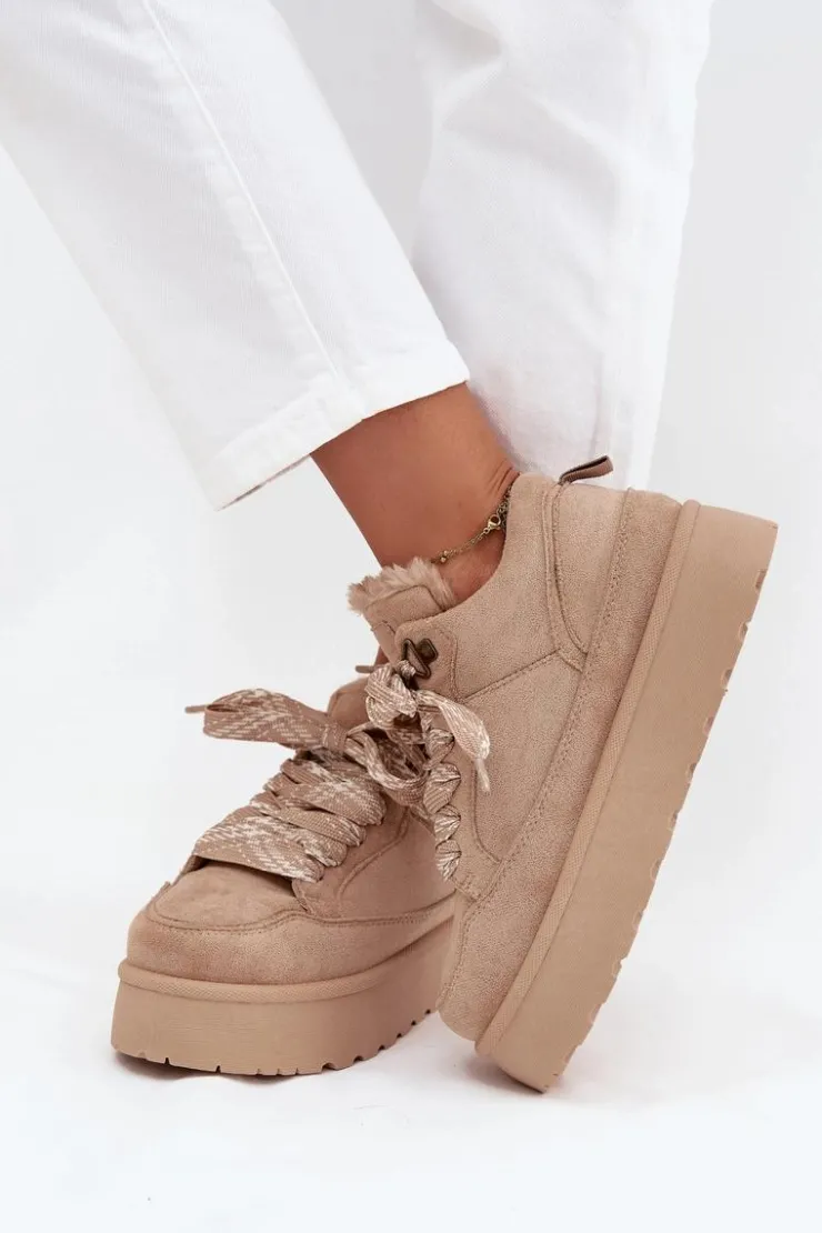 Śniegowce damskie w sportowym stylu wykonane z miękkiego eko zamszu to idealny wybór na zimowe dni. Osadzone na solidnej platformie skutecznie izolują od chłodu, a ocieplenie miękkim futerkiem zapewnia komfort i ciepło. Sznurowany fason pozwala na dobre dopasowanie do stopy, podkreślając jednocześnie casualowy, miejski charakter butów. To praktyczny i stylowy model, który doskonale sprawdzi się w codziennych zimowych stylizacjach. Przy wyborze rozmiaru prosimy sugerować się tabelą rozmiarów.