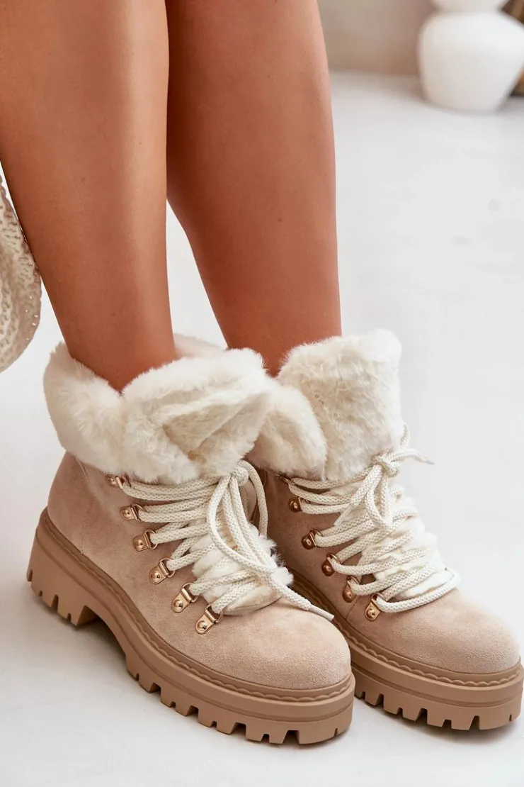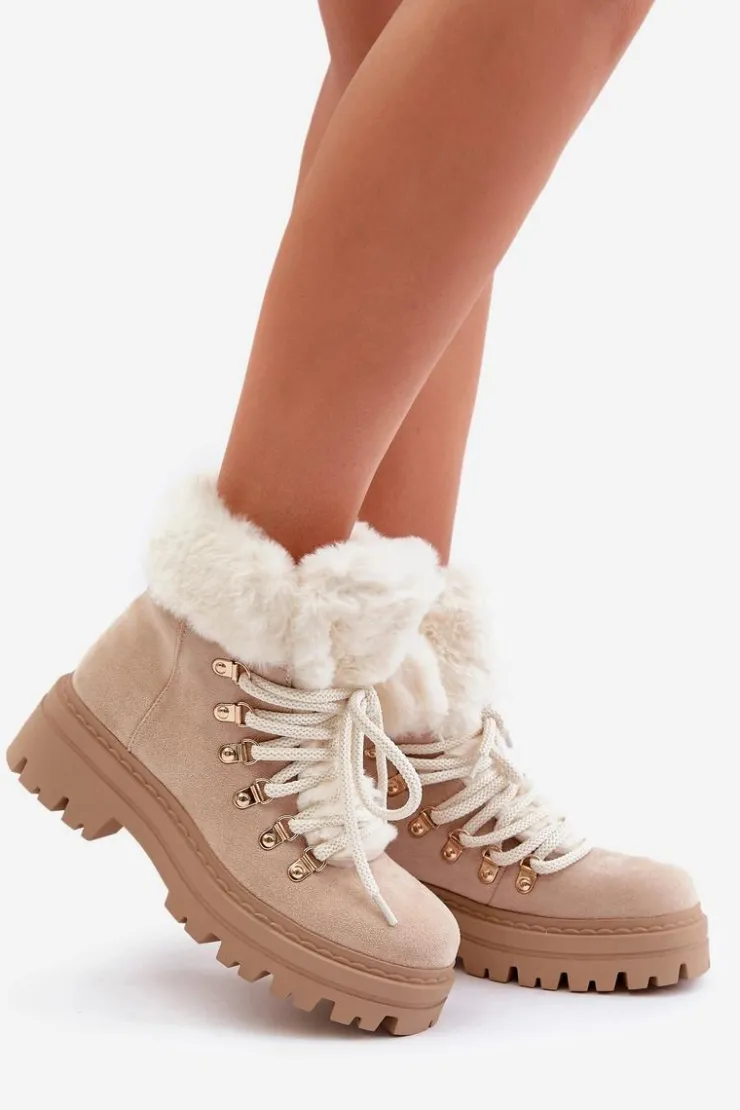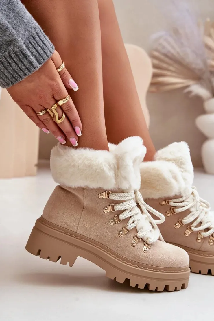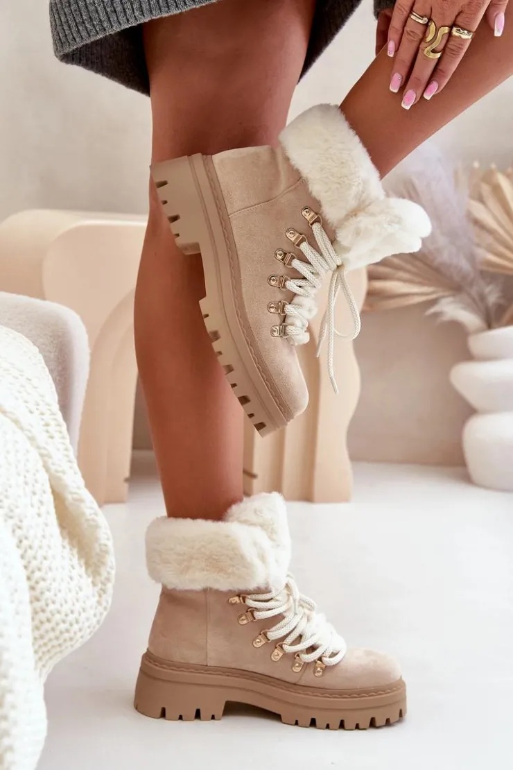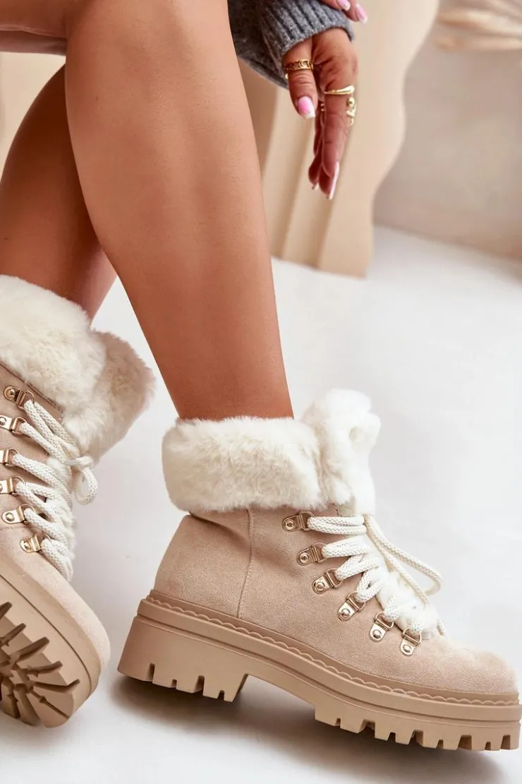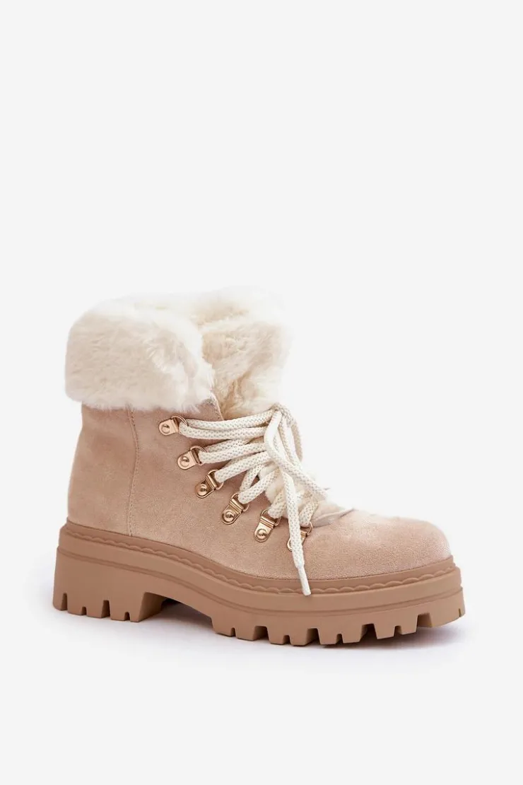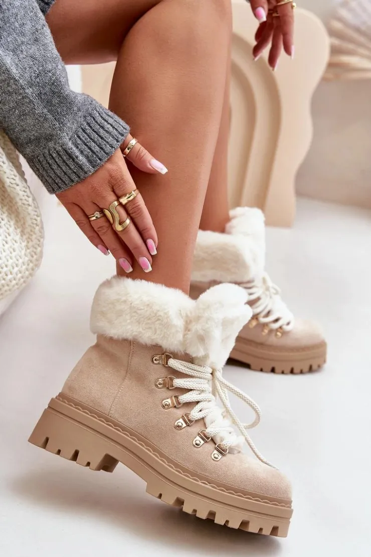 Trapery damskie wykonane z eko zamszu to doskonały wybór na chłodne dni. Sznurowanie pozwala na precyzyjne dopasowanie buta do stopy, zapewniając wygodę podczas codziennego użytkowania. Wnętrze ocieplane kocem obuwniczym gwarantuje ciepło i komfort nawet w mroźne dni. Górna część cholewki została ozdobiona miękkim futerkiem, które nie tylko dodaje stylu, ale również chroni przed zimnem. Te trapery łączą w sobie funkcjonalność i modny wygląd, idealnie sprawdzając się zarówno w miejskich stylizacjach, jak i podczas zimowych spacerów. Przy wyborze rozmiaru prosimy sugerować się tabelą rozmiarów.