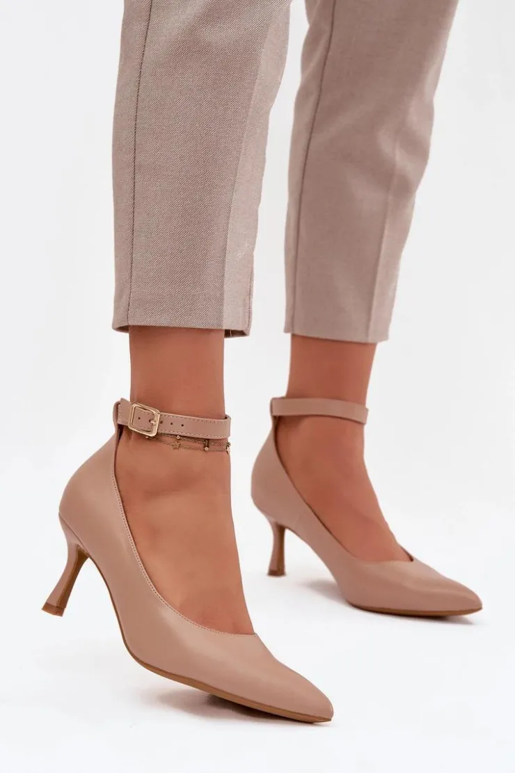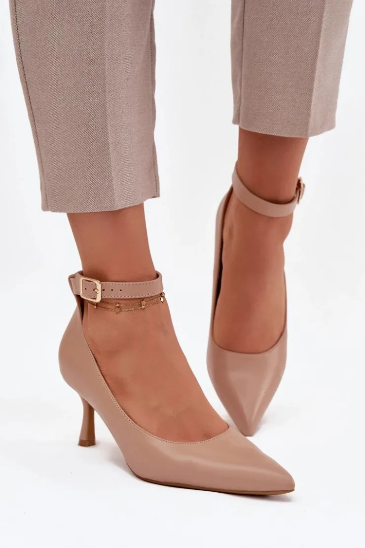 Szpilki – czółenka damskie wykonane z wysokiej jakości eko skóry to połączenie klasyki i kobiecego wdzięku. Model zachwyca eleganckim fasonem ze szpiczastym noskiem, który optycznie wysmukla nogi i dodaje sylwetce lekkości. Buty posiadają regulowany pasek ze sprzączką, który nie tylko stanowi ozdobny akcent, ale także zapewnia idealne dopasowanie do stopy i stabilność podczas chodzenia. Smukła szpilka pięknie podkreśla kobiecą sylwetkę, dodając jej elegancji i pewności siebie. Te czółenka doskonale sprawdzą się zarówno w eleganckich stylizacjach biurowych, jak i na specjalne okazje – do sukienek, spódnic czy klasycznych garniturów. Przy wyborze rozmiaru prosimy sugerować się tabelą rozmiarów.