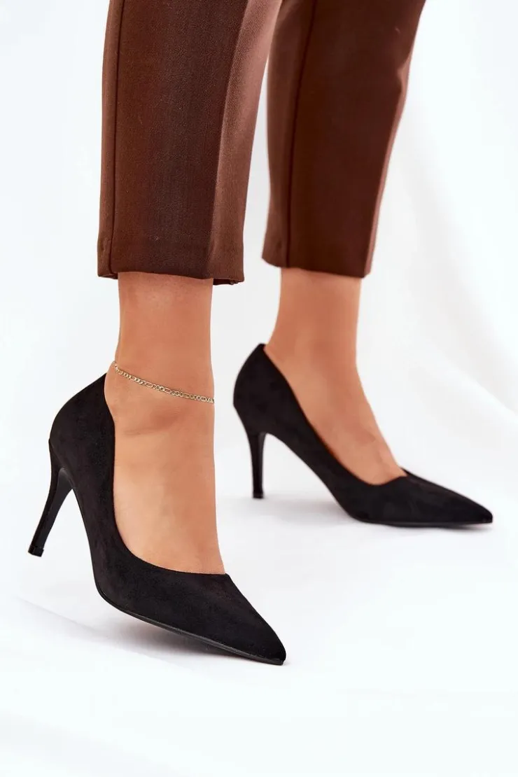 Eko zamszowe szpilki to klasyka, która wzbogaci każdą kreację o elegancję. Szpiczaste noski nadają im wyrafinowany wygląd, a ich gładka, jednolita cholewka czyni je ponadczasowymi i uniwersalnymi. Miękka wkładka zapewni komfort przez cały dzień. Te szpilki są idealnym wyborem na wieczorowe wyjścia, spotkania biznesowe oraz specjalne okazje, łącząc elegancję z wygodą. Przy wyborze rozmiaru prosimy sugerować się tabelą rozmiarów.