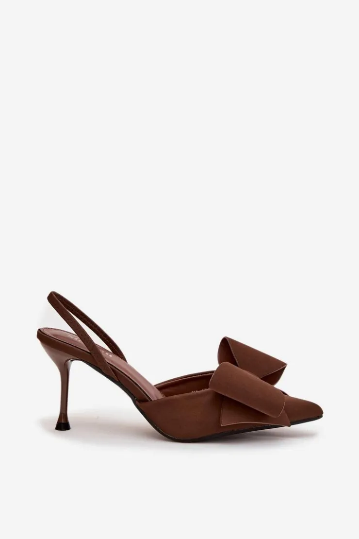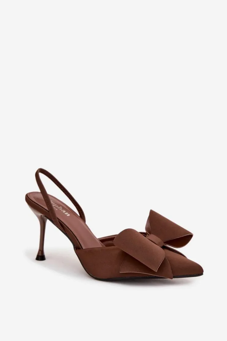 Eleganckie szpilki damskie z odkrytą piętą stanowią doskonały wybór dla kobiet, które pragną połączyć styl z komfortem. Wykonane z materiału tekstylnego. Szpiczaste noski podkreślają ich delikatną elegancję, a kokardka umieszczona z przodu dodaje im dodatkowego wdzięku. Świetnie sprawdzą się na różnorodne okazje, od oficjalnych spotkań po wieczorne wyjścia. Przy wyborze rozmiaru prosimy sugerować się tabelą rozmiarów.