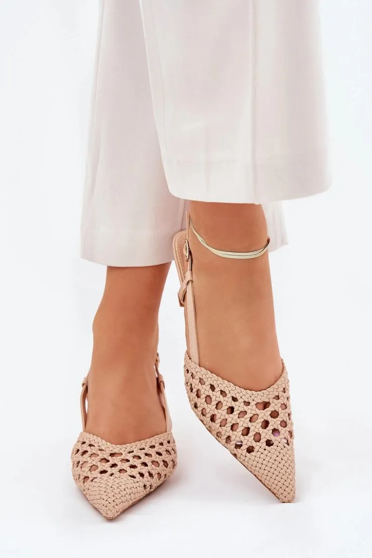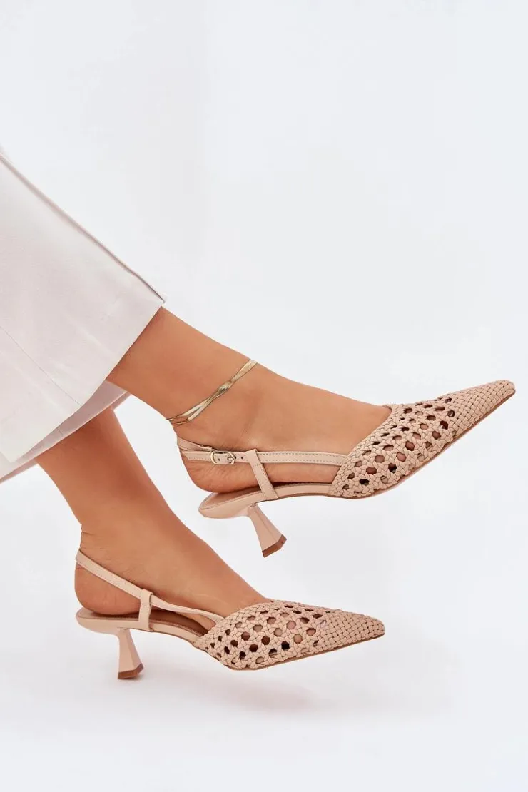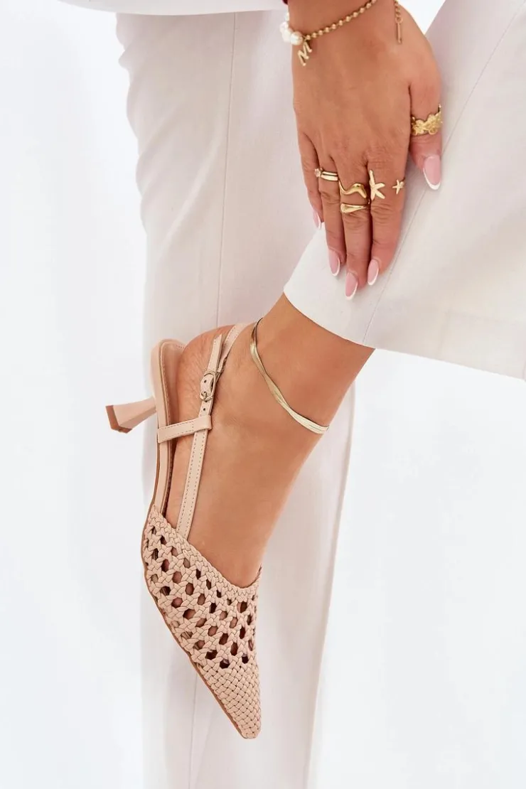 Szpilki damskie z odkrytą piętą, które zachwycają swoim wyglądem. Model zapinany na sprzączkę, co zapewnia idealne dopasowanie do stopy. Te szpilki będą doskonałym wyborem na wieczorne wyjścia i uroczystości, wprowadzając do każdej stylizacji stylowy akcent. Przy wyborze rozmiaru prosimy sugerować się tabelą rozmiarów.