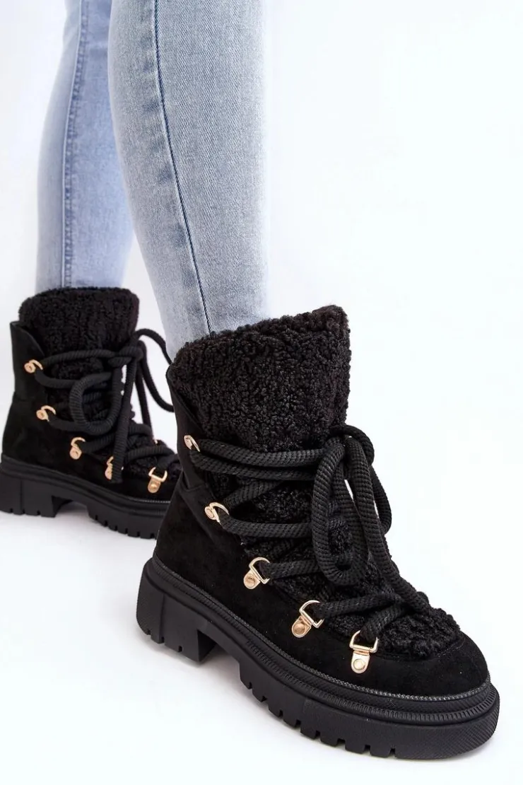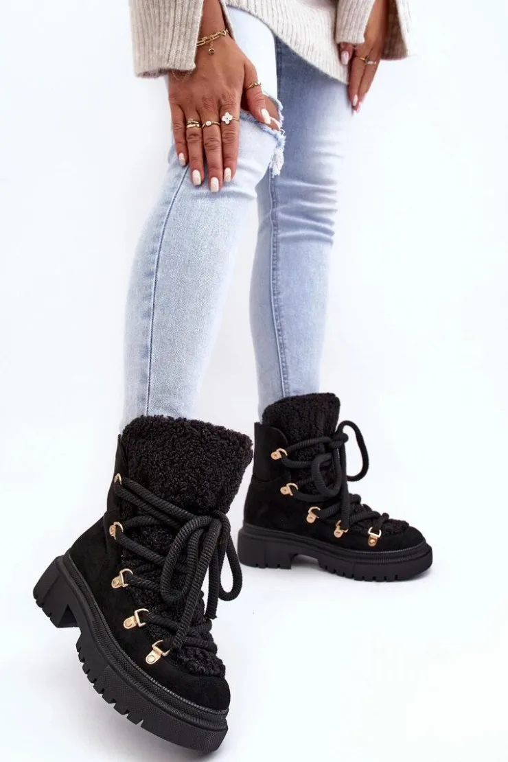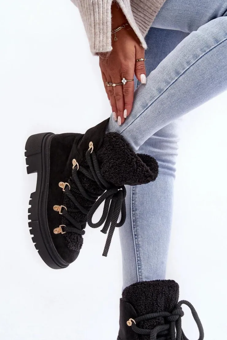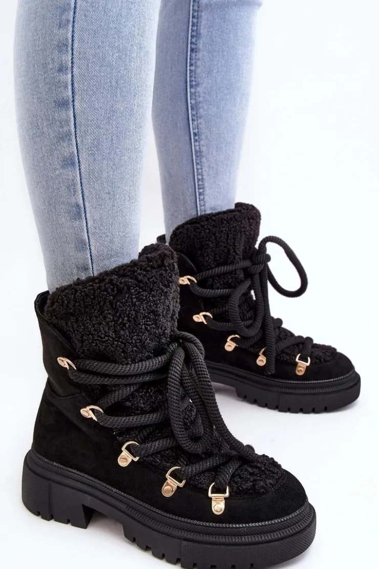 Damskie Boto Trapery Śniegowce Damskie Z Wiązaniem Czarne Shala